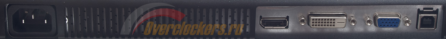 Все разъемы для подключения размещены в задней части корпуса и ориентированы вниз. Среди них: питание, цифровые DisplayPort, DVI-D, аналоговый D-Sub (VGA) и USB интерфейс для подключения к ПК. Аудиоразъемы у ZR2330w не предусмотрены.