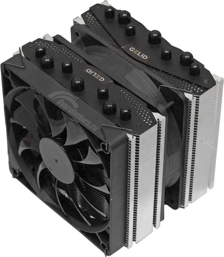 Одного взгляда достаточно, чтобы понять – перед нами типичная модель двухсекционной компоновки. Формы радиатора по-европейски сдержанны (как-никак, главный офис Gelid находится в Швейцарии, хотя производство размещено в Гонконге), так что на ум сразу приходит аналогия с голландским Phanteks PH-TC14PE и австрийской Noctua NH-D14.