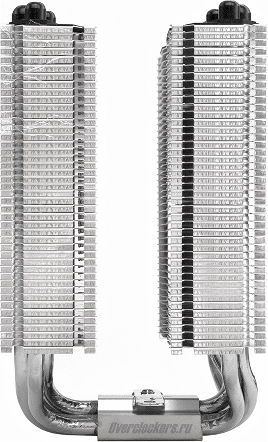 По итогам внешнего осмотра можно заключить, что перед нами весьма неоднозначное воплощение идеи двухсекционного радиатора. С одной стороны, на себя обращают внимание оригинальная компоновка блока тепловых трубок и общая аккуратность изготовления. С другой, площадь рассеивания явно подкачала, да и скромные 120 мм «ветродуи» вряд ли позволят этой модели показать высокую эффективность в тестах.
