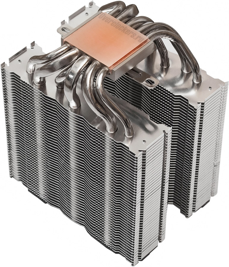 Приведенные цифры позволяют понять, что эта модель рассчитана на использование 120 мм вентиляторов. Для суперкулера такой выбор выглядит странно. 140 мм (и даже 150 мм) вентиляторы уже стали своеобразным стандартом в этом классе, ведь по сравнению с 120 мм моделями они способны обеспечить больший расход при равноценном уровне шума.