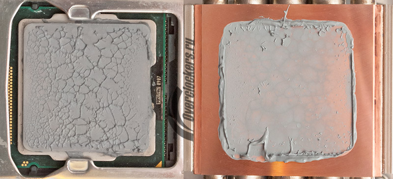 Отпечаток на крышке процессора получился неплохим. Однако нужно отметить интересный феномен – слой пасты по краям чуть тоньше, чем в центре. Либо перед нами вогнутое основание, либо оно идеально ровное, а «завалена» середина крышки CPU (об этом, кстати, неоднократно предупреждали конструкторы Thermalright, поясняя, почему они делают основания выпуклыми).