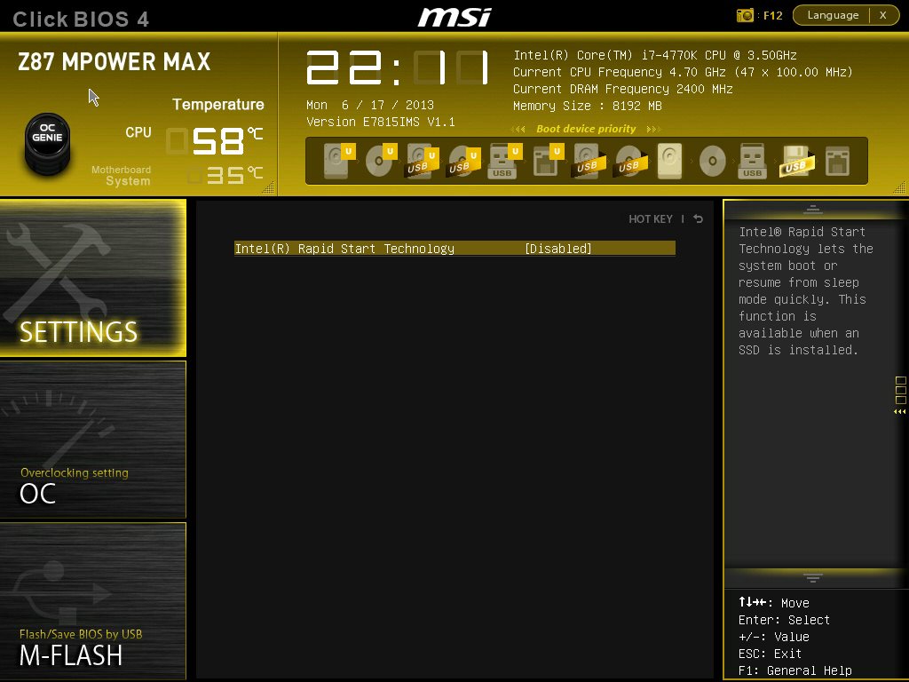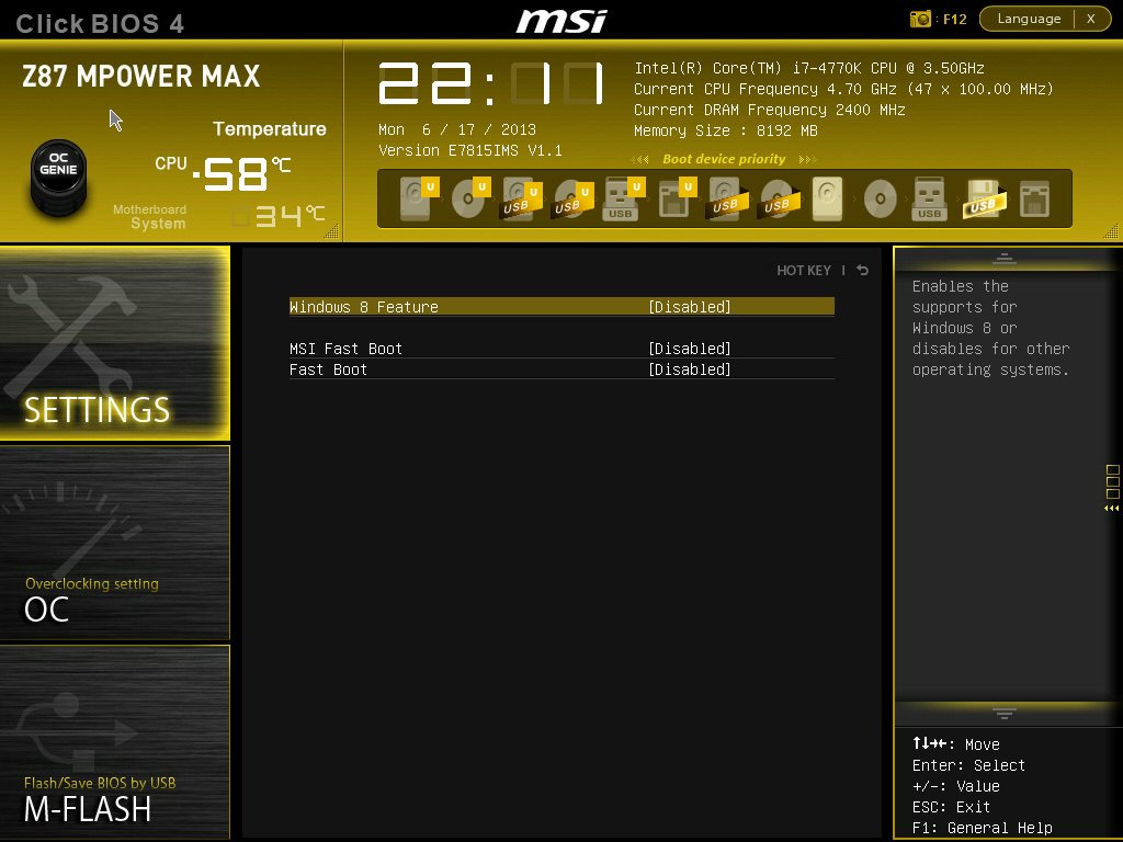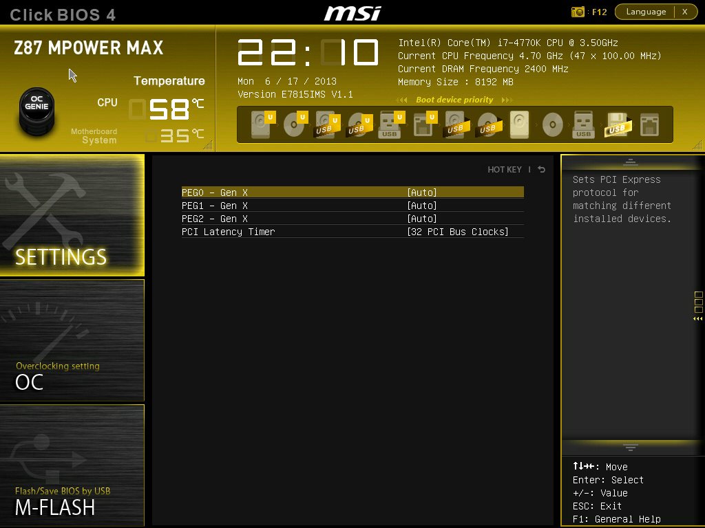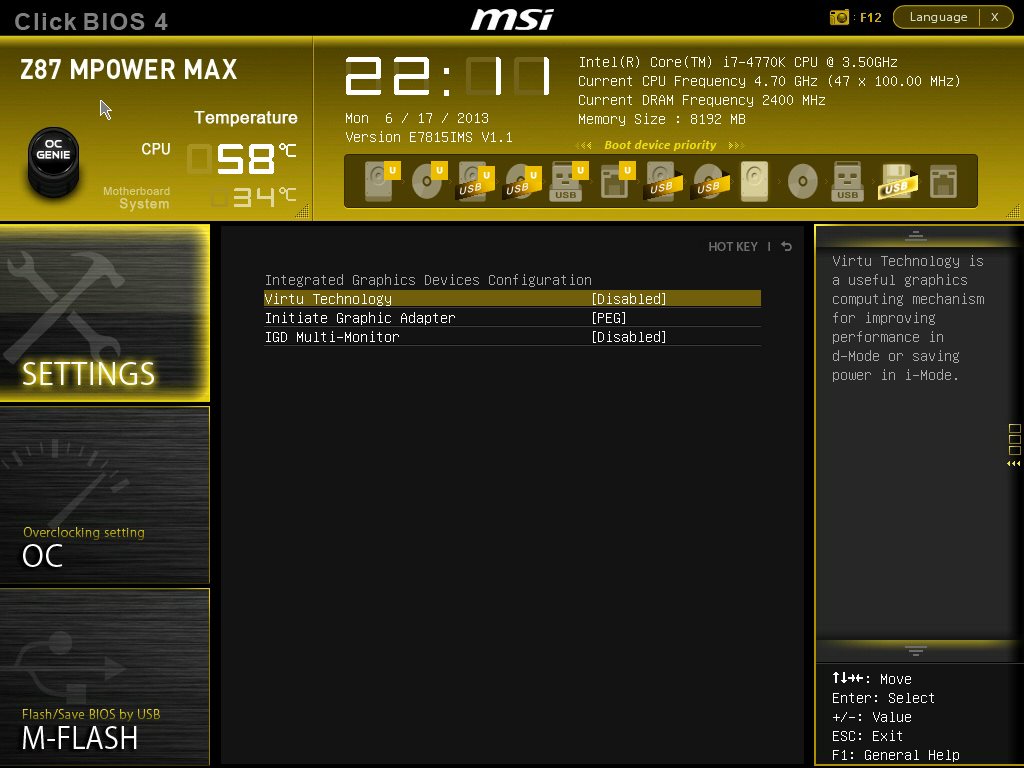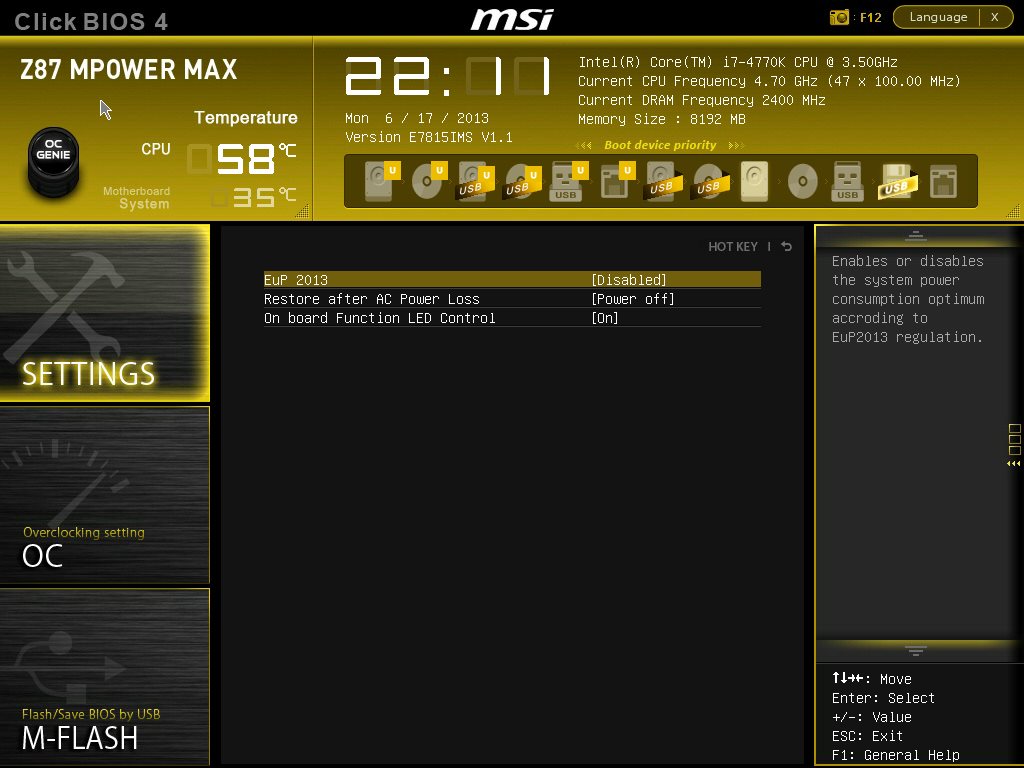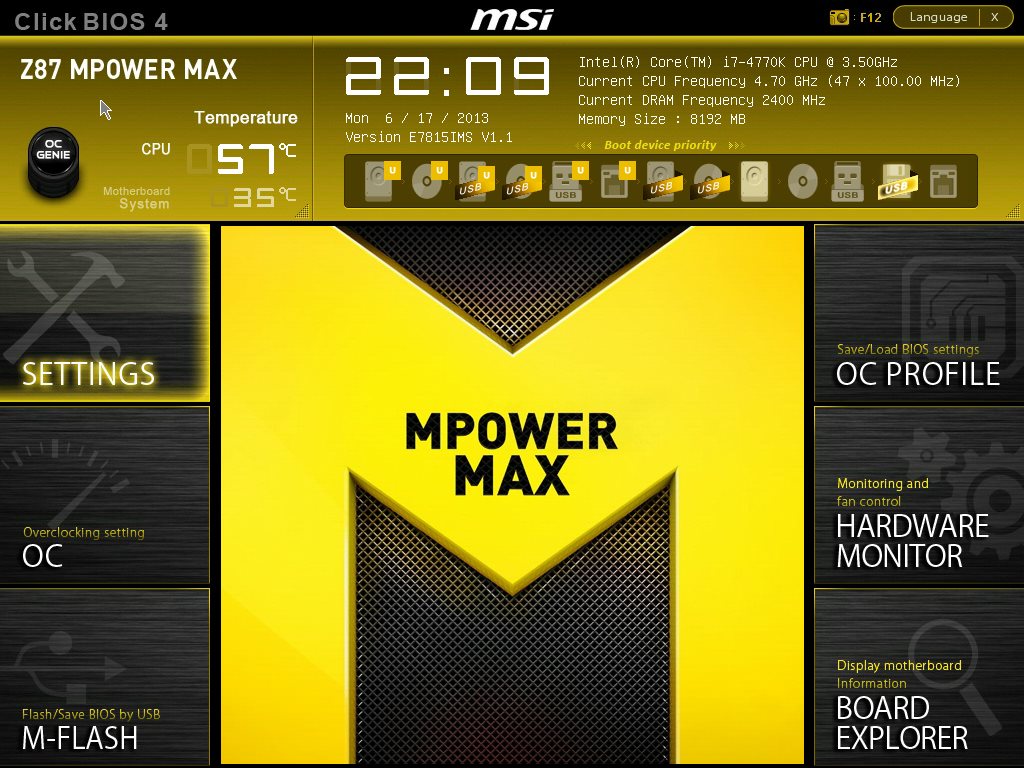 Производитель разумно решил не изобретать велосипед, а использовать уже проверенный временем каркас и раскрасить его новыми красками соответственно оформлению продукта. Поэтому внешне все выглядит по-новому, а структура осталась точно такой же, как на MSI Z87-GD65 Gaming. Видеоролик ниже позволяет быстро пробежаться по меню настроек.