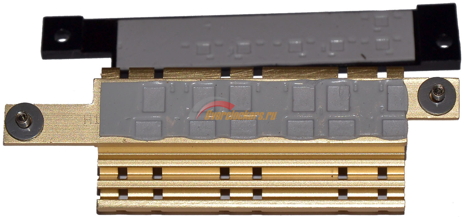 Контакт силовых элементов и теплорассеивателя осуществляется через термопрокладку средней толщины, проблем с контактом силовых элементов и термопрокладки нет.