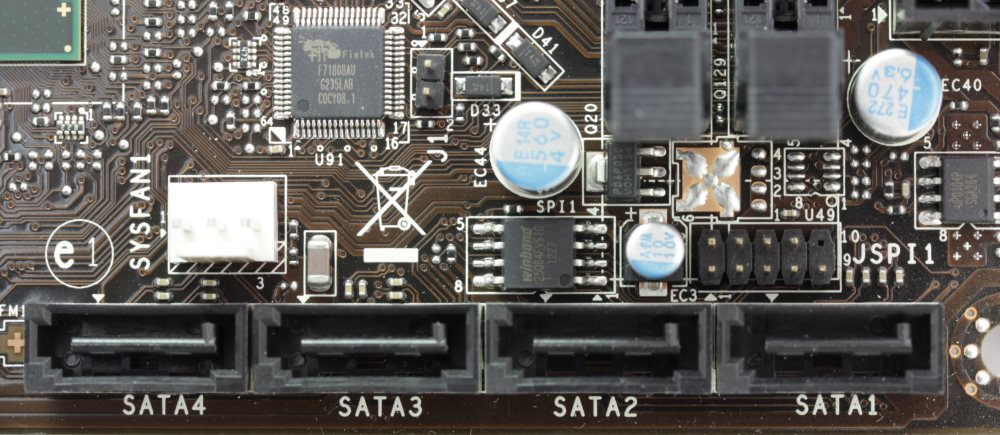 Чуть выше расположена микросхема контроллера ввода/вывода и системного мониторинга Fintek F71808.