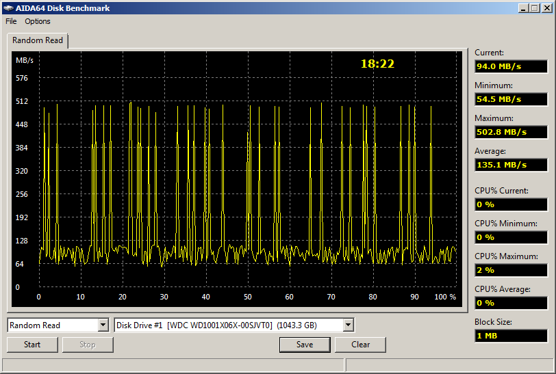 Разметим объем устройства следующим образом: создадим раздел в начале накопителя размером 10 Гбайт и с помощью dd еще раз создадим файл, заполненный случайными данными. Файл размером 10 160 мегабайт создавался в течение 100 минут, что составляет примерно 170 Мбайт/с.