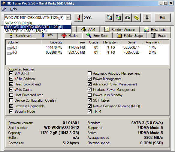 HDTune последней на момент написания материала версии 5.50 тоже считает устройство единым.