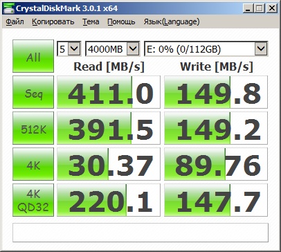 ISOЭто уже больше синтетический бенчмарк, который полезен тем, что позволяет проводить тестирование в двух режимах. Первый – хорошо поддающийся компрессии поток однотипных данных, второй – поток случайных, практически не поддающийся сжатию. Соответственно, итоговый результат в обоих случаях будет очень близок к максимально возможным показателям тестируемого носителя. Однако будет использован только один режим – тестирование набором случайных данных.