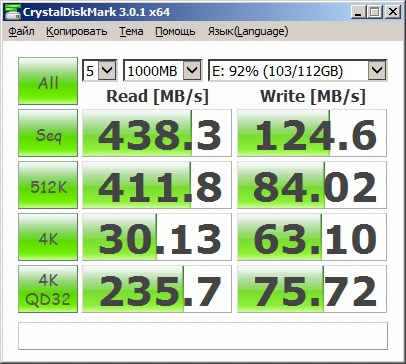 ScoreДанный бенчмарк позволяет увидеть скорость операций с файлами внутри одного носителя. Использовалась версия 1.7.4739.38088.