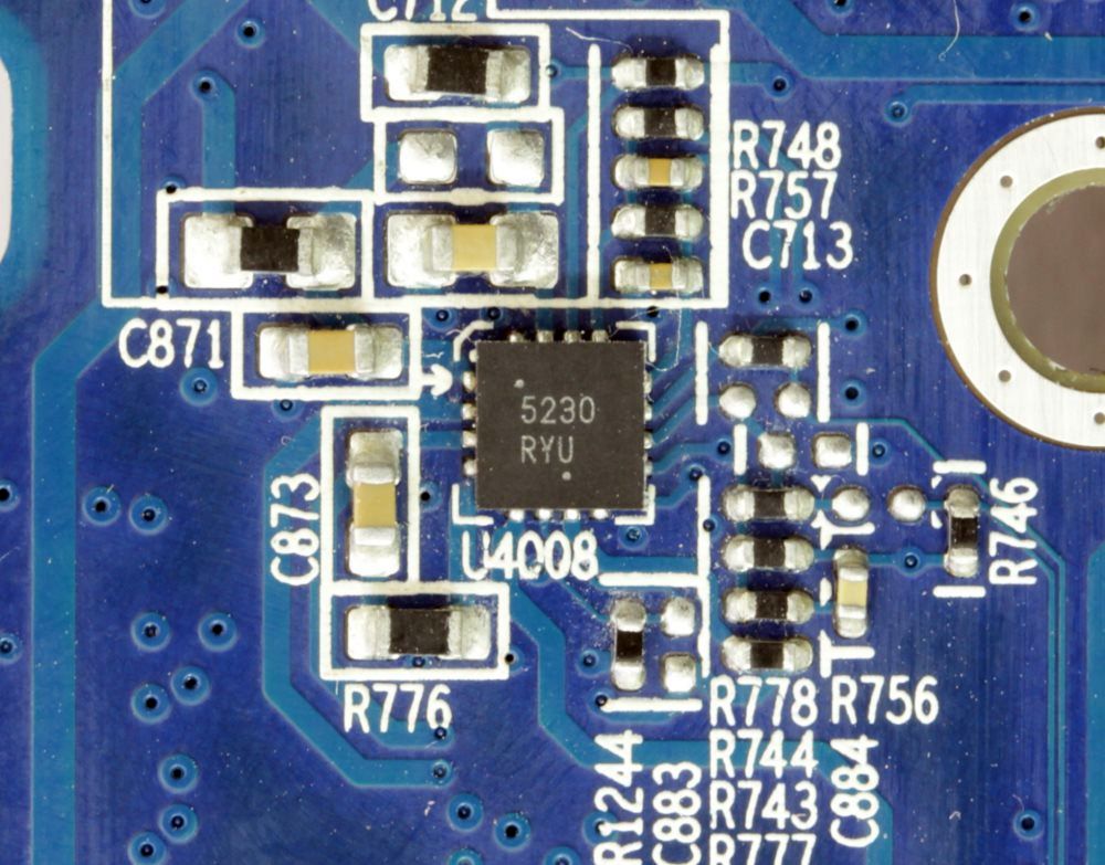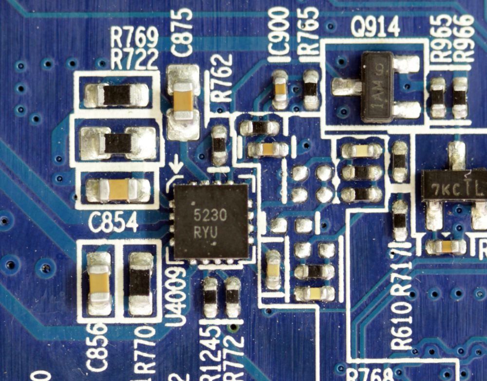 С обратной стороны можно обнаружить еще два ШИМ-контроллера с маркировкой 5230 RYU. К сожалению, их идентифицировать не удалось.