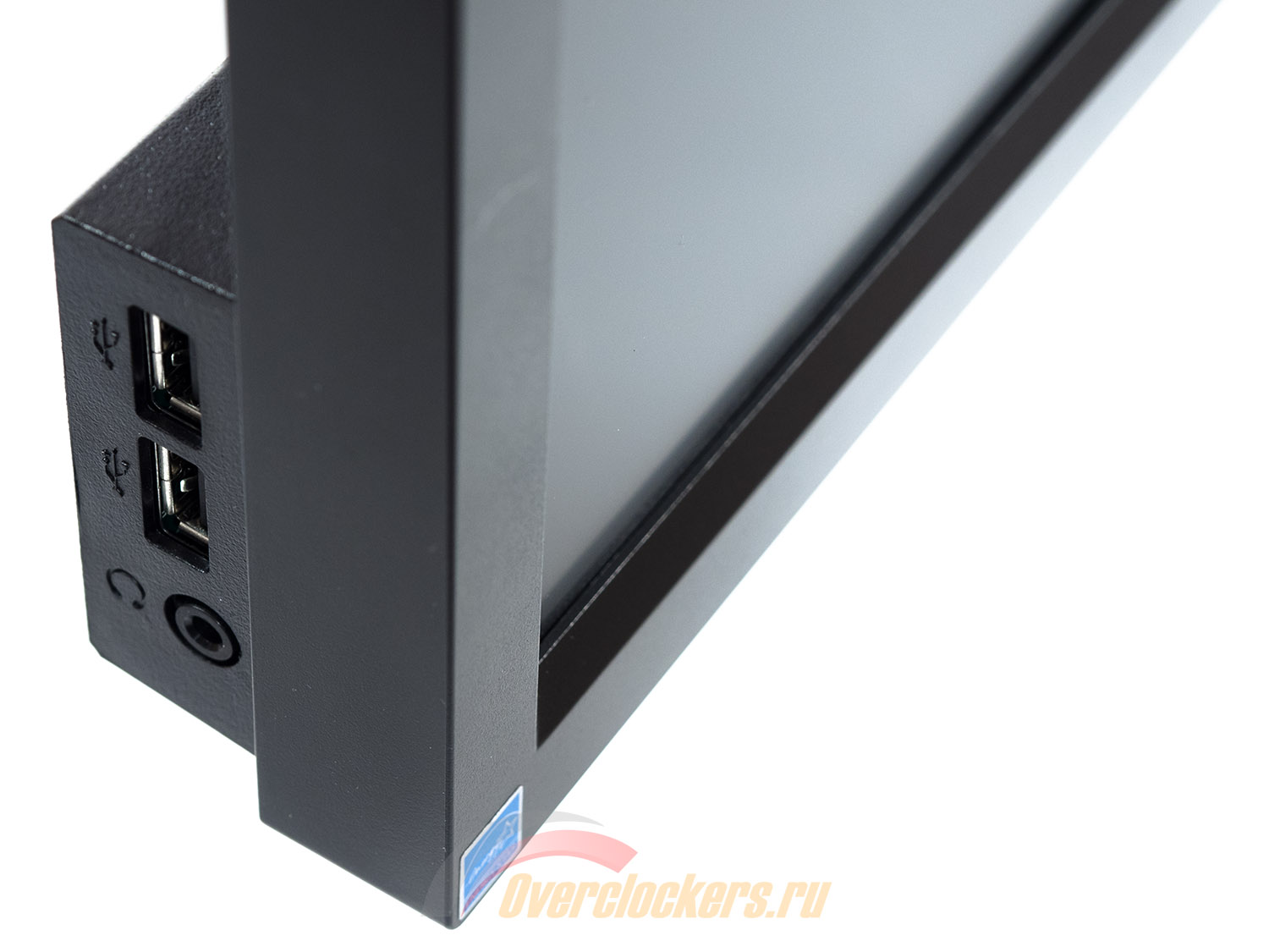 В центральной части нижней рамки экрана расположены датчики освещенности и приближенности. На левой стороне находится блок с двумя дополнительными разъемами USB 2.0 и выходом на наушники.