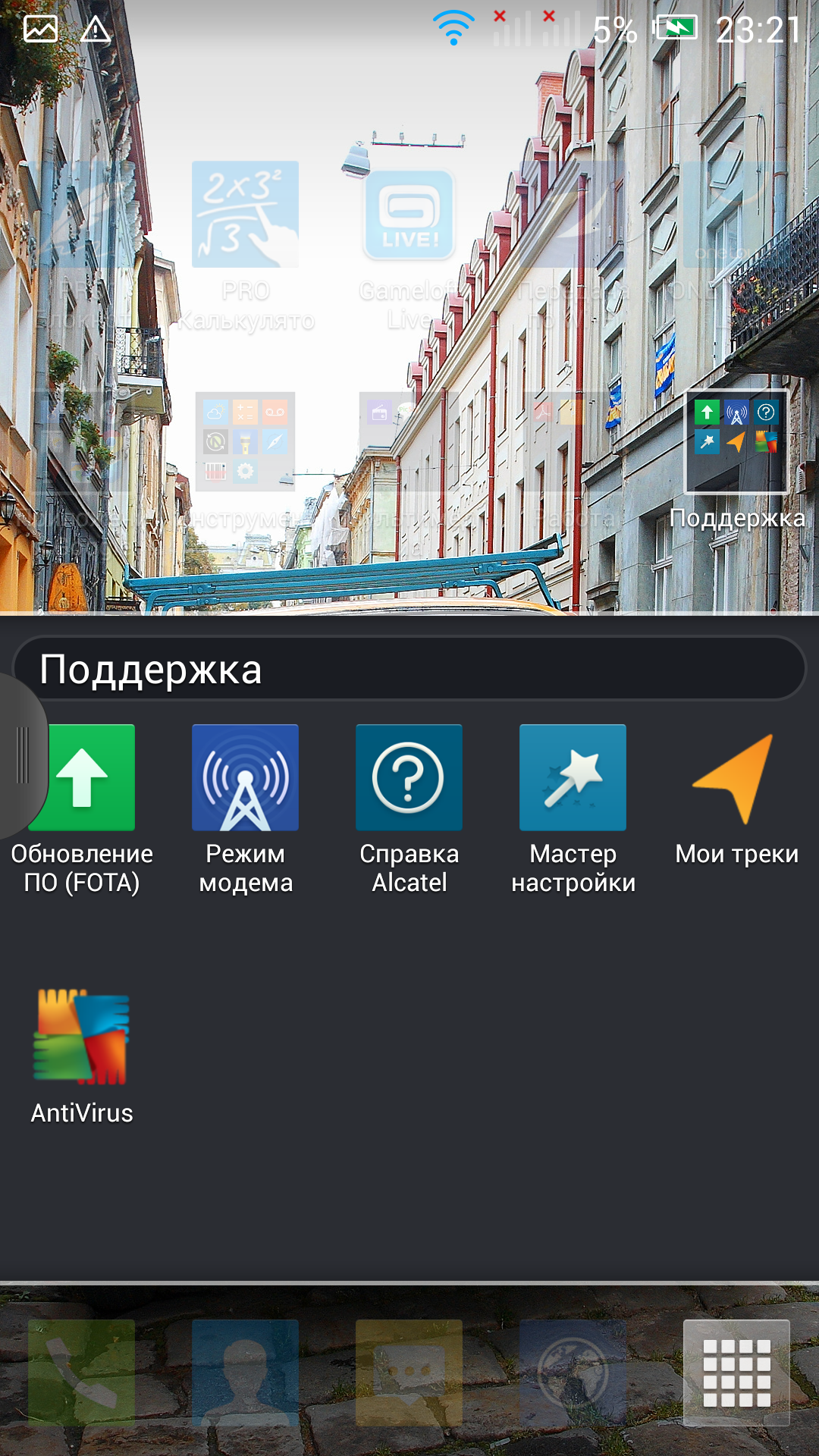 В отличие от своего коллеги в виде Alcatel OneTouch Idol X+, герой обзора не может похвастать мягким размытием фона в меню приложений и внутри папок.