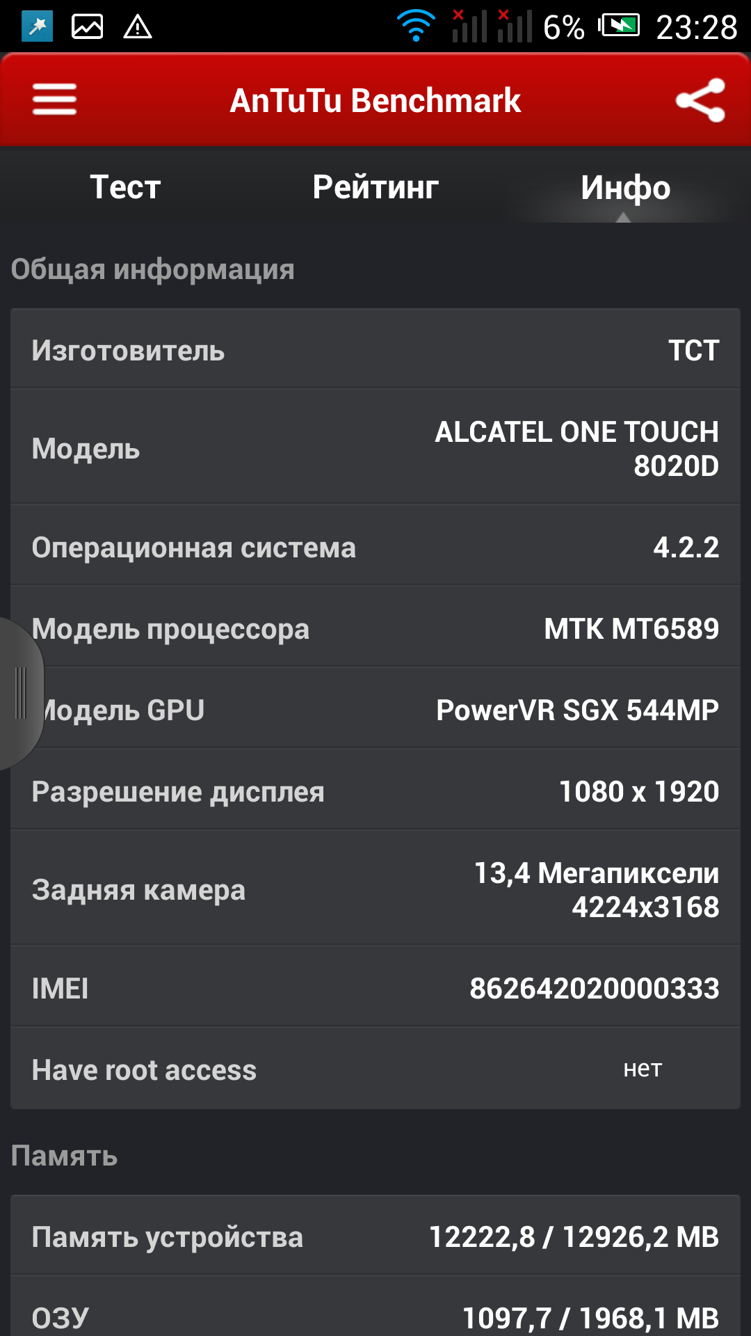 MediaTek MT6589T (4х1500 МГц) |