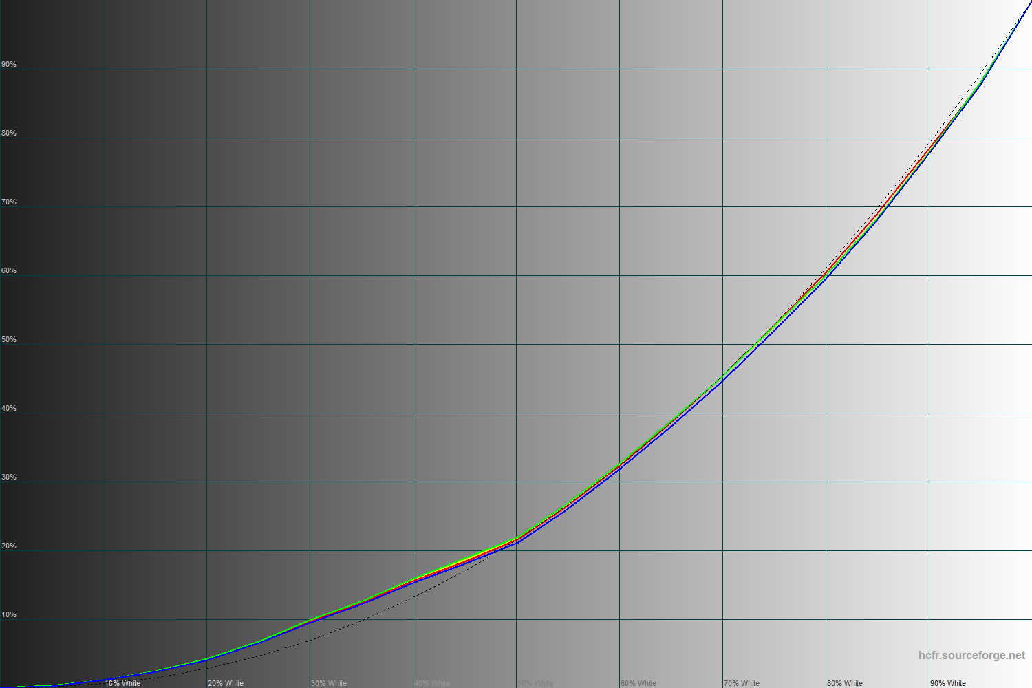 Гамма-кривые выглядят неплохо и лежат рядом. К тому же они практически совпадают с рефересной кривой, отклоняясь от нее лишь на темных оттенках.