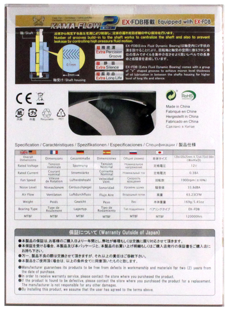 Отличительной чертой Kama Flow является использование модифицированного гидродинамического подшипника с именем EX-FDB, который обеспечивает до 120 000 часов наработки на отказ, а сам вентилятор должен оказаться достаточно тихим и эффективным в работе.
