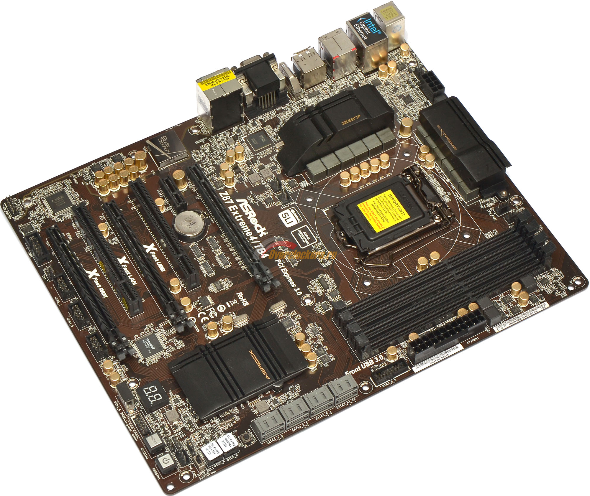 Фотография ASRock Z87 Extreme4/TB4, позволяющая оценить высоту компонентов: