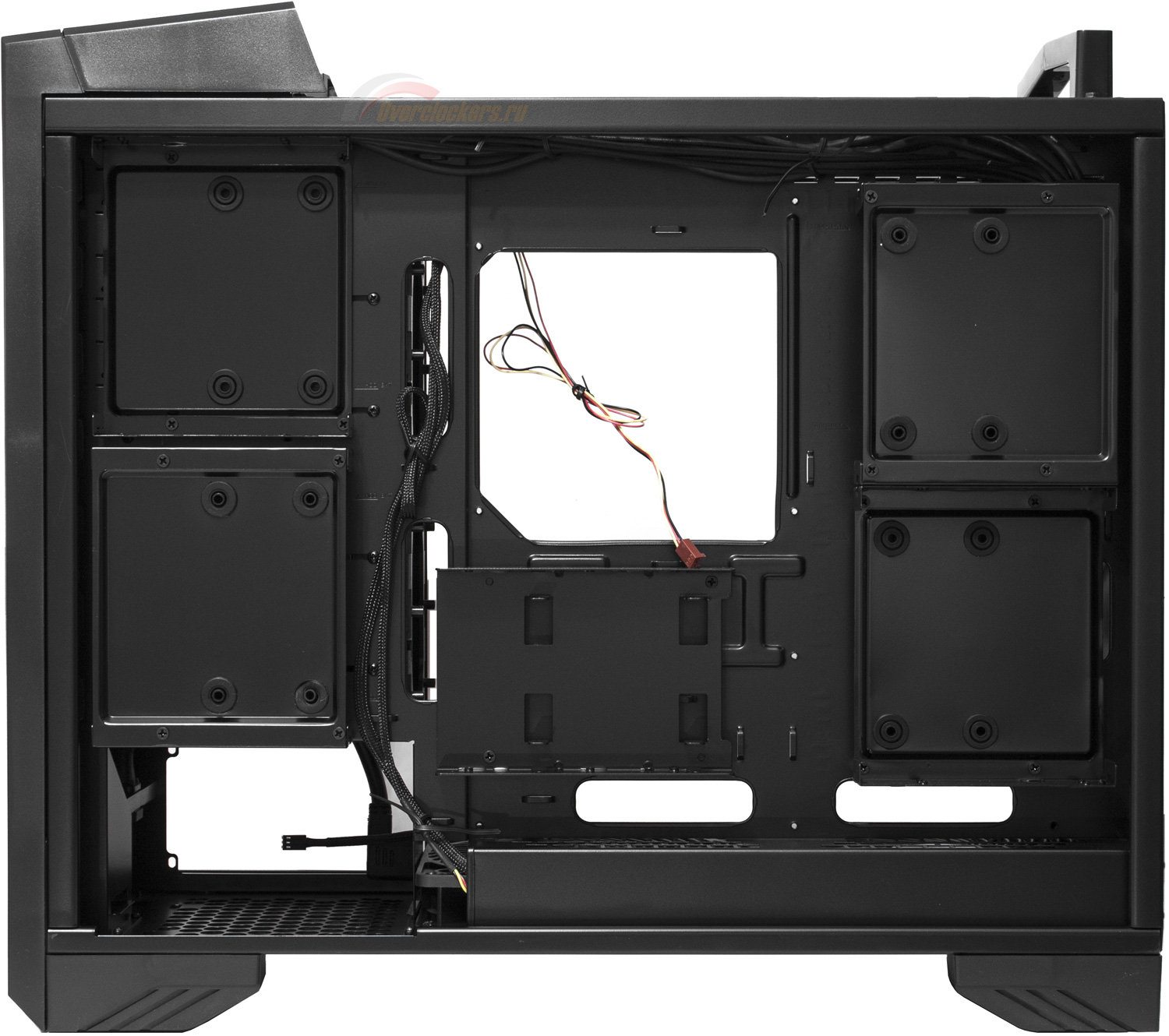 Системе кабель-менеджмент стоит поставить пять баллов. Помимо достаточного количества отверстий больших размеров, есть много свободного места за поддоном платы, предназначенного для размещения проводов. Редкий корпус может похвастать подобным.