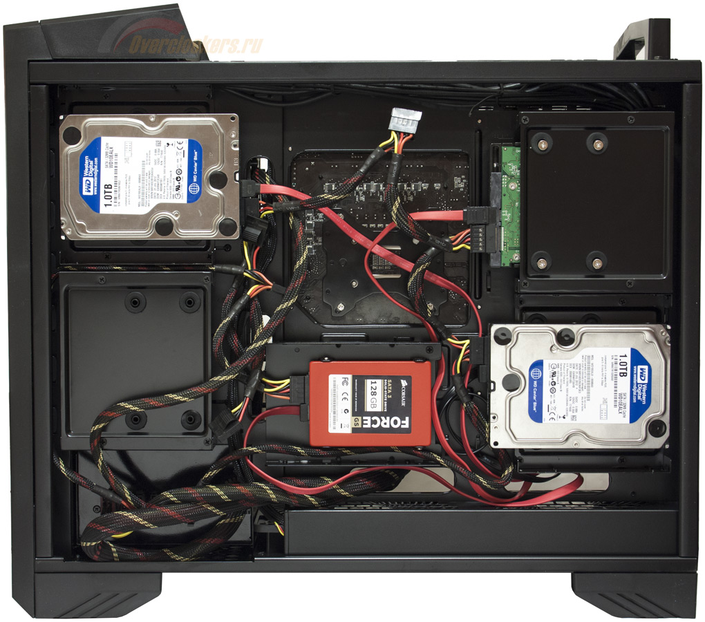 Охлаждение HDD обеспечивается установкой вентиляторов в соответствующие места, как с фронтальной стороны, так и с тыловой.