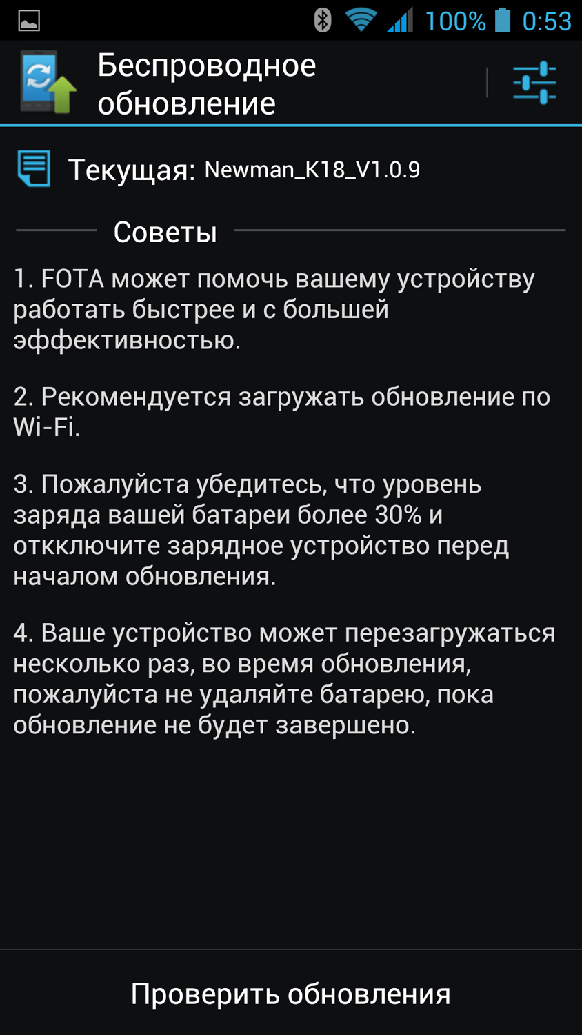 В качестве операционной системы в Newman K18 используется Android 4.2.2. Пользовательский интерфейс стандартный. Обновления по воздуху (FOTA) возможны. Нормальной русскоязычной поддержки нет (вся надежда на форумы и сторонние сайты). По вопросам изменения прошивки можно пройти по этой ссылке или посетить этот ресурс.