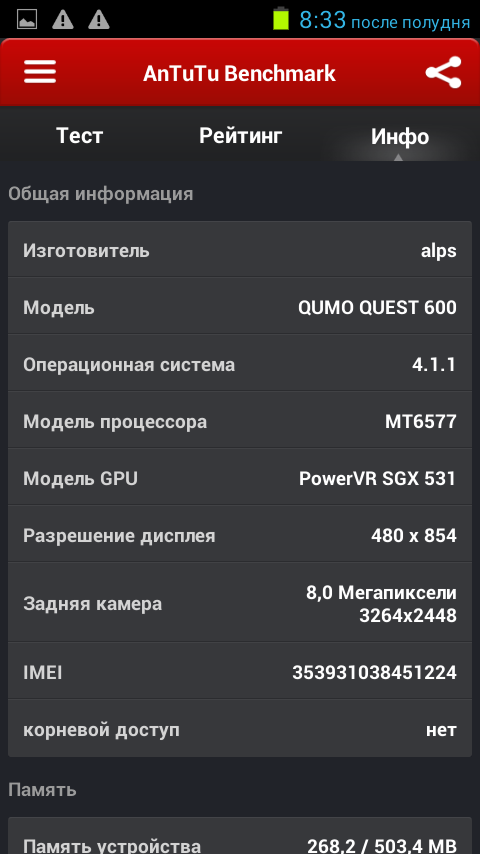 Для начала предлагаю ознакомиться со сведениями о системе, которые предоставляют утилиты CPU Z и AnTuTu: