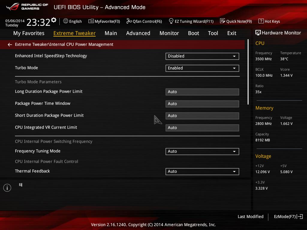 Все настройки стоят по умолчанию, а тактовая частота процессора в простое не падает. Действительно, данная материнская плата выжимает из камня все его соки, даже когда он не нагружен приложением. Возможно, это правильно, поскольку такие материнские платы покупают явно не для экономии электроэнергии, а для достижения максимальной производительности в любых режимах. Так оно и получается.
