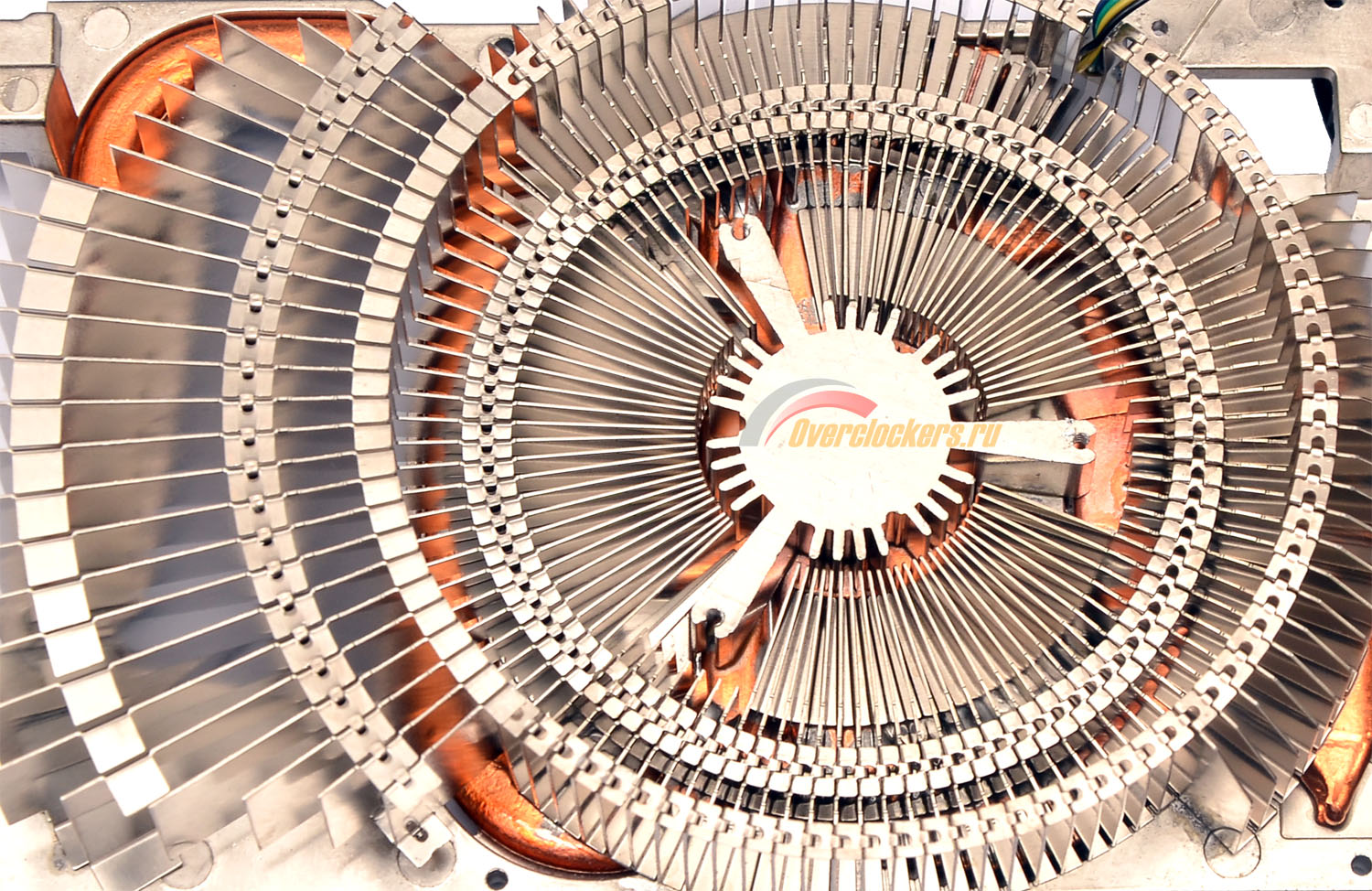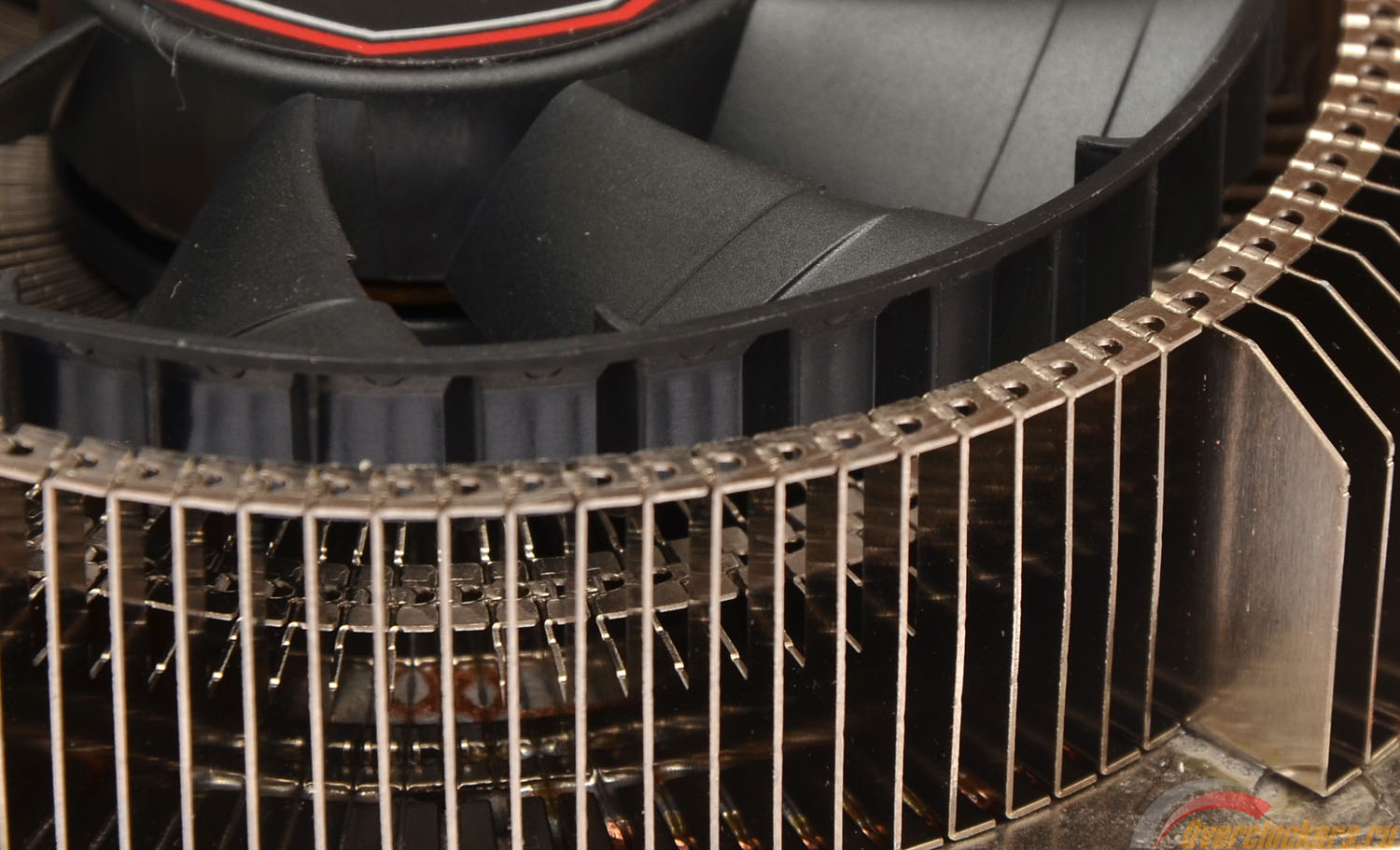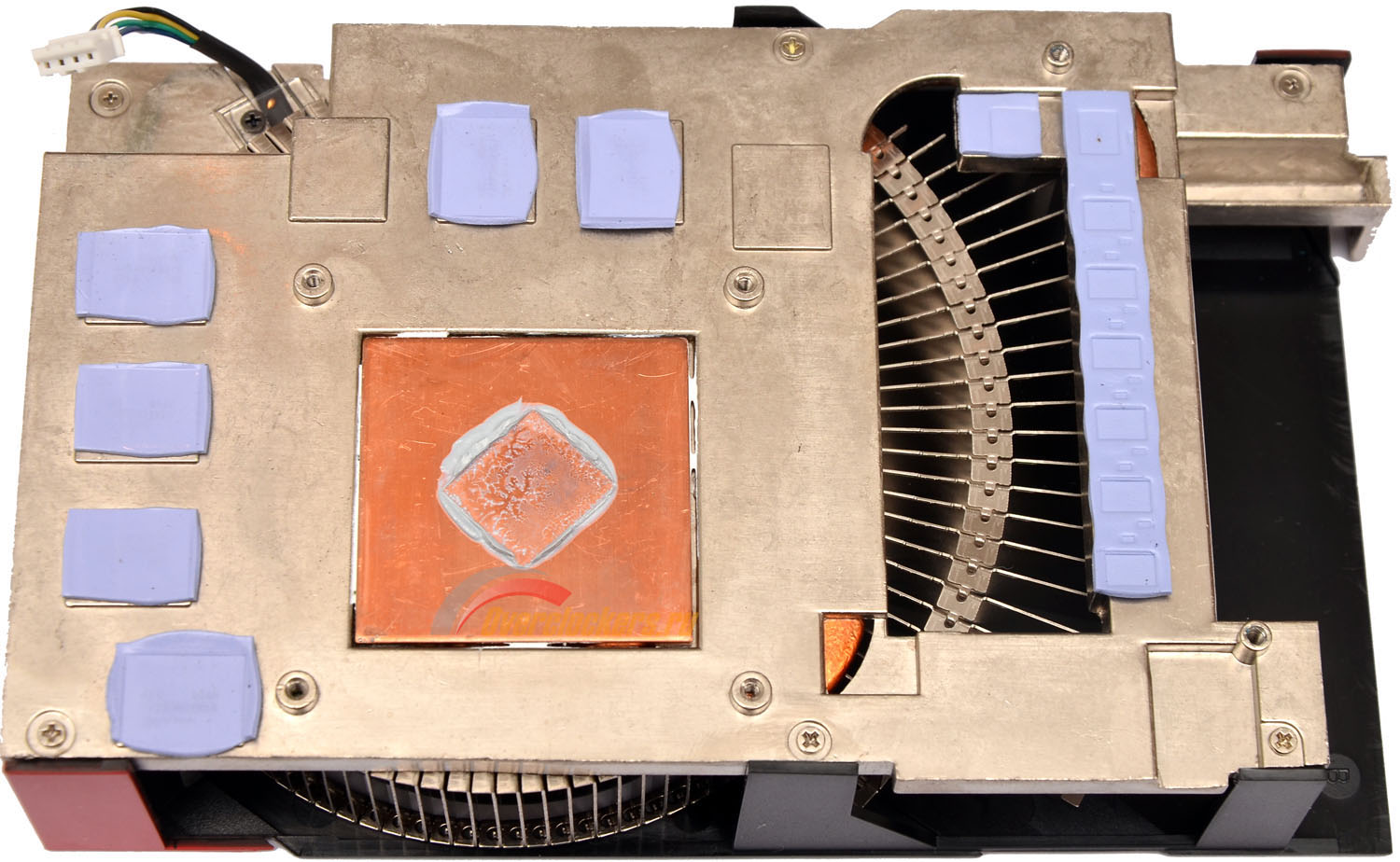 Основание радиатора по всей площади пронизано тепловыми трубками, так что отвод тепла трудно разделить на какие-то отдельные зоны. С одной стороны, это гарантия хорошего температурного режима преобразователей питания, с другой – следствием может стать повышенный температурный режим графического процессора. Но это только предположение, поскольку лишь по результатам тестирования можно будет судить об эффективности системы охлаждения.