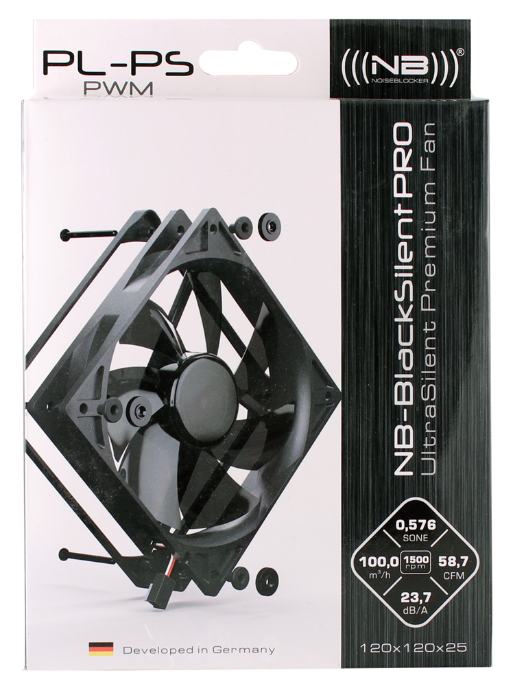 Мы уже протестировали в свое время пару младших моделей, и они показали свою достойную результативность, на этот раз нам выпадет шанс посмотреть, что будет с данным типом вентилятора, если увеличить его скорость вращения до 1500 оборотов в минуту. Как и всегда, серия BlackSilentPRO оснащается одним из наиболее живучих подшипников NB-NanoSLI, основанном на гидродинамике, в данном случае заявлено до 140 000 часов.