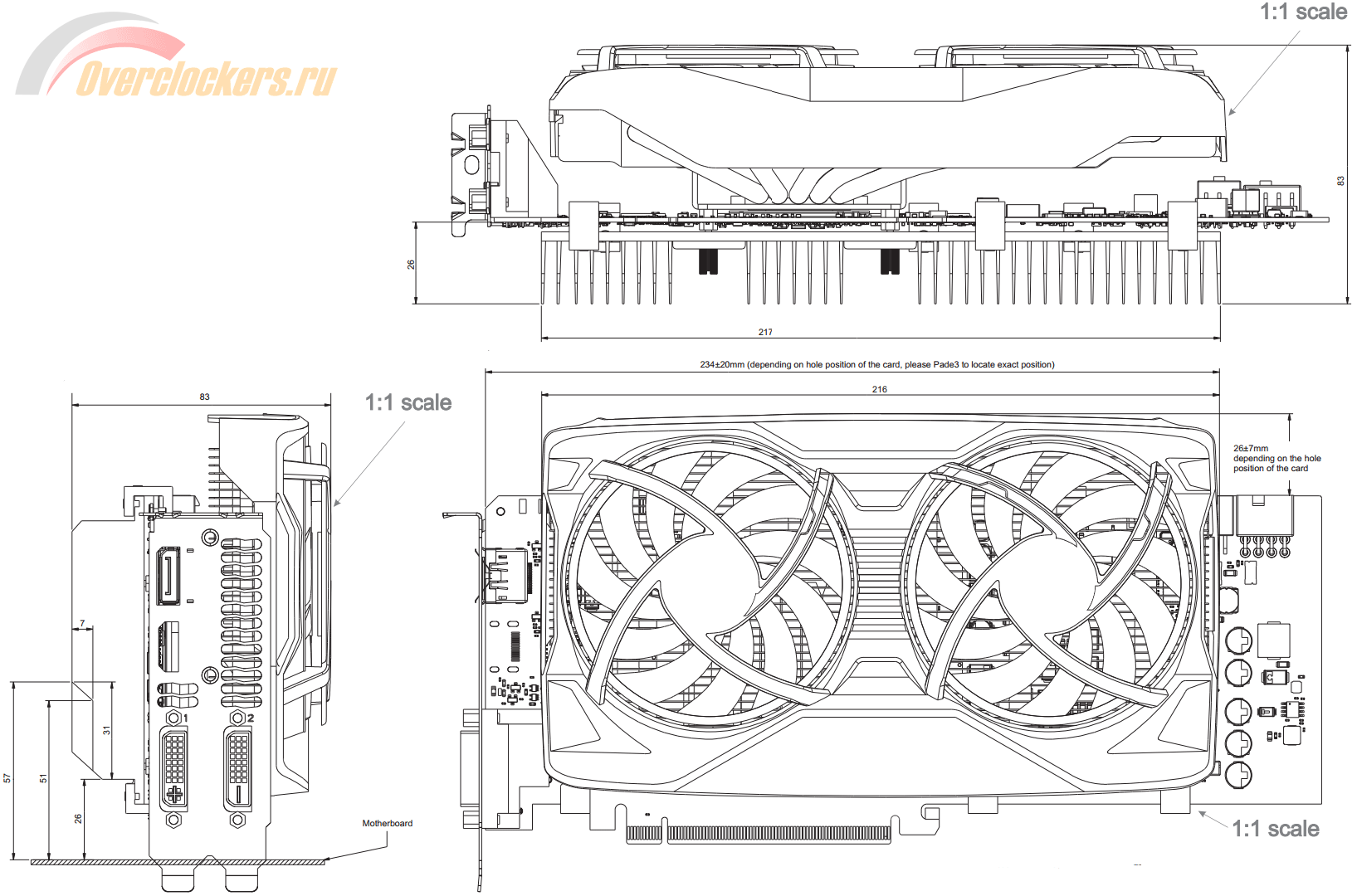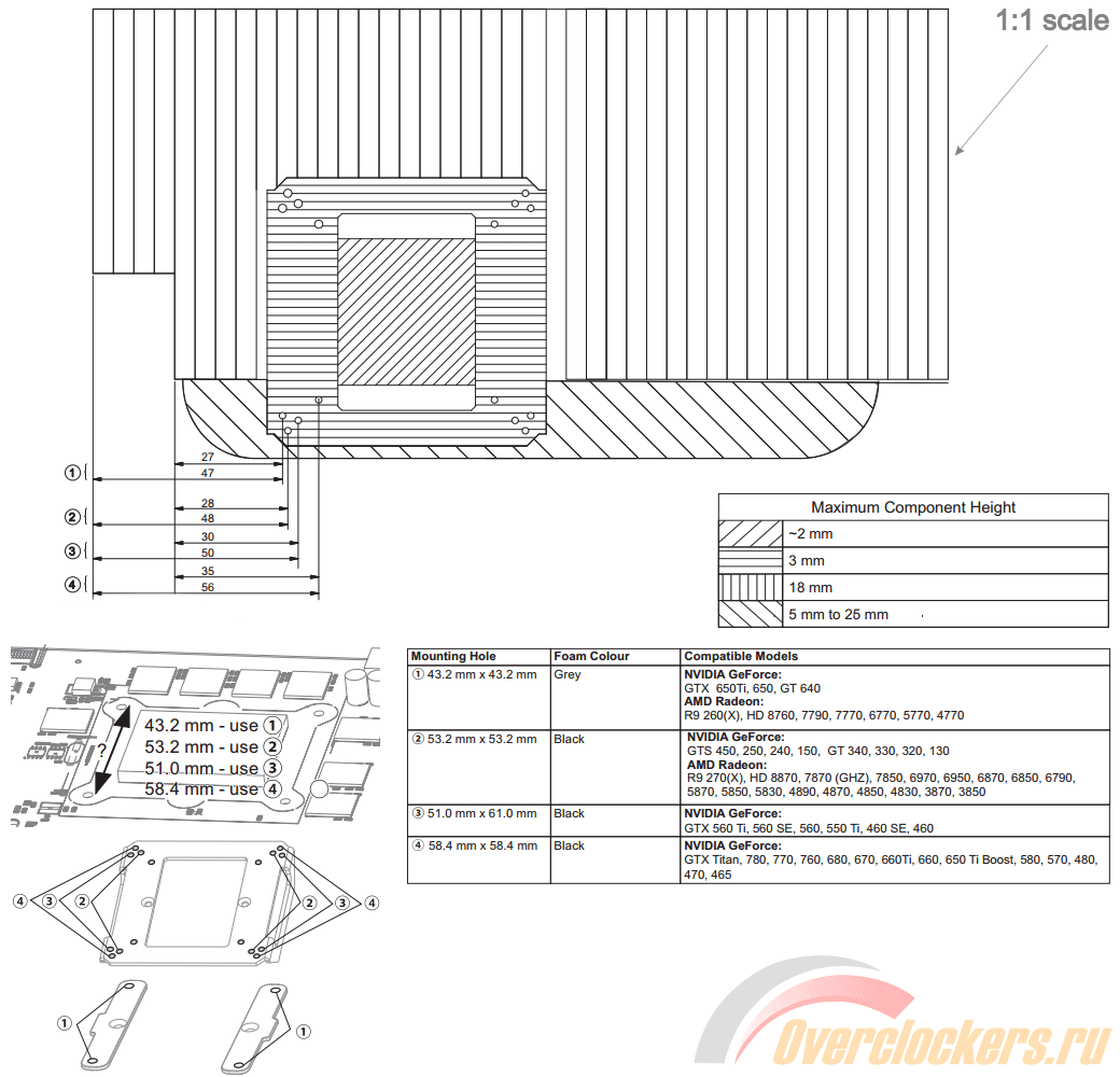 Для беспрепятственной установки на видеокарту в районе примерного расположения двухэтажных DVI портов пластины укорочены. Такое решение можно лишь приветствовать, в моей практике был случай, что без данного выреза были проблемы.