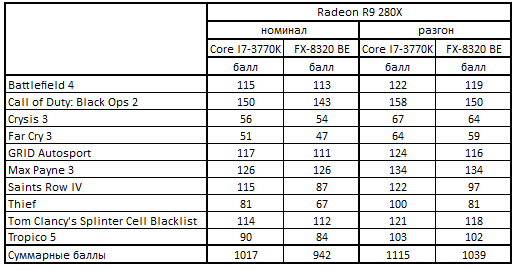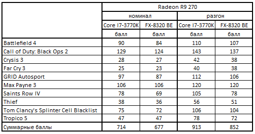 FX-8320 BE Баллы (средний FPS)