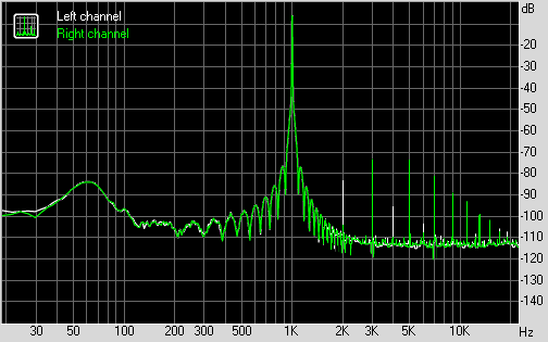 В RMAA тесте (выполненном при подключении к звуковой карте ASUS Xonar DS/A; соотношение сигнал/шум на запись 110 дБ) можно видеть соответствующие показатели.