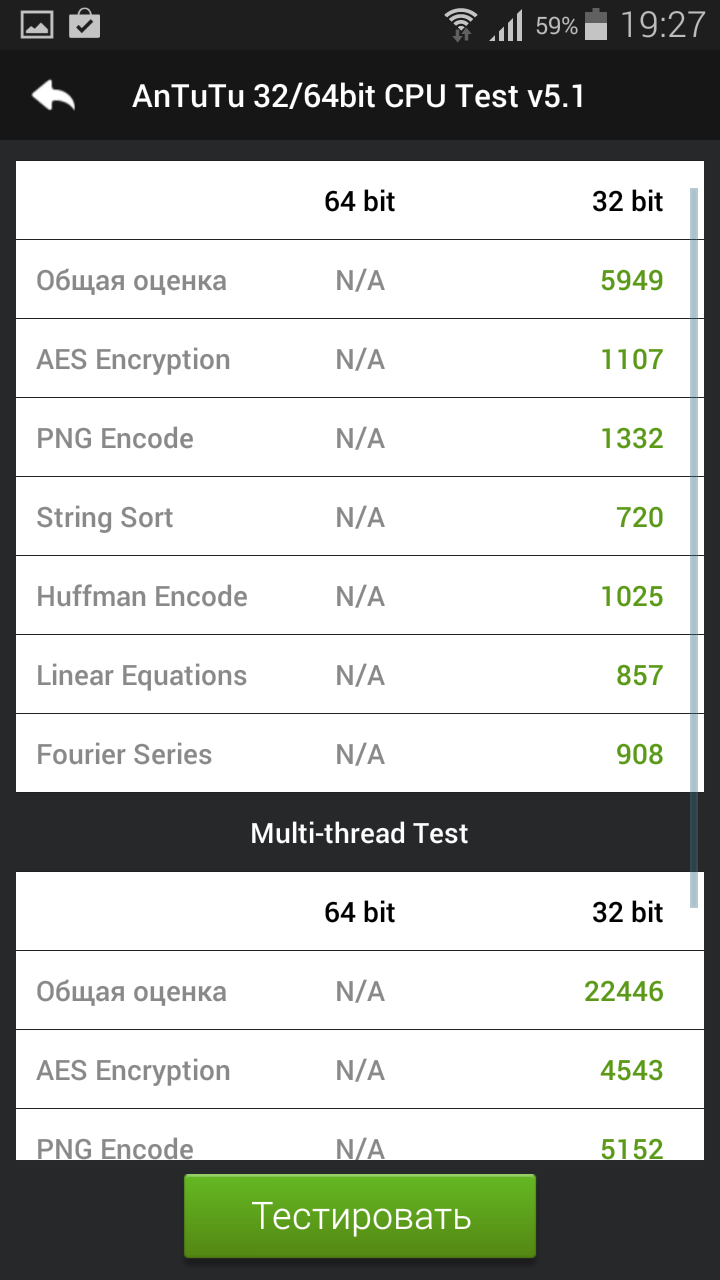 С помощью программы AnTuTu Tester был проведен тест батареи. Результаты оказались весьма средними.