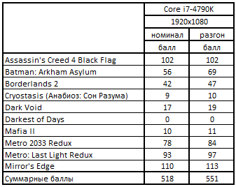 - Большинство участников смогло обеспечить высокие результаты в играх Assassin's Creed 4 Black Flag, Batman Arkham City, Borderlands 2, Metro 2033 Redux, Metro: Last Light Redux и Mirror's Edge.