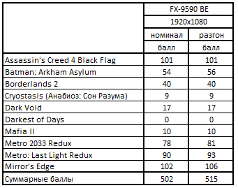 - В играх Cryostasis, Dark Void и Mafia 2 все процессоры продемонстрировали невысокую производительность.