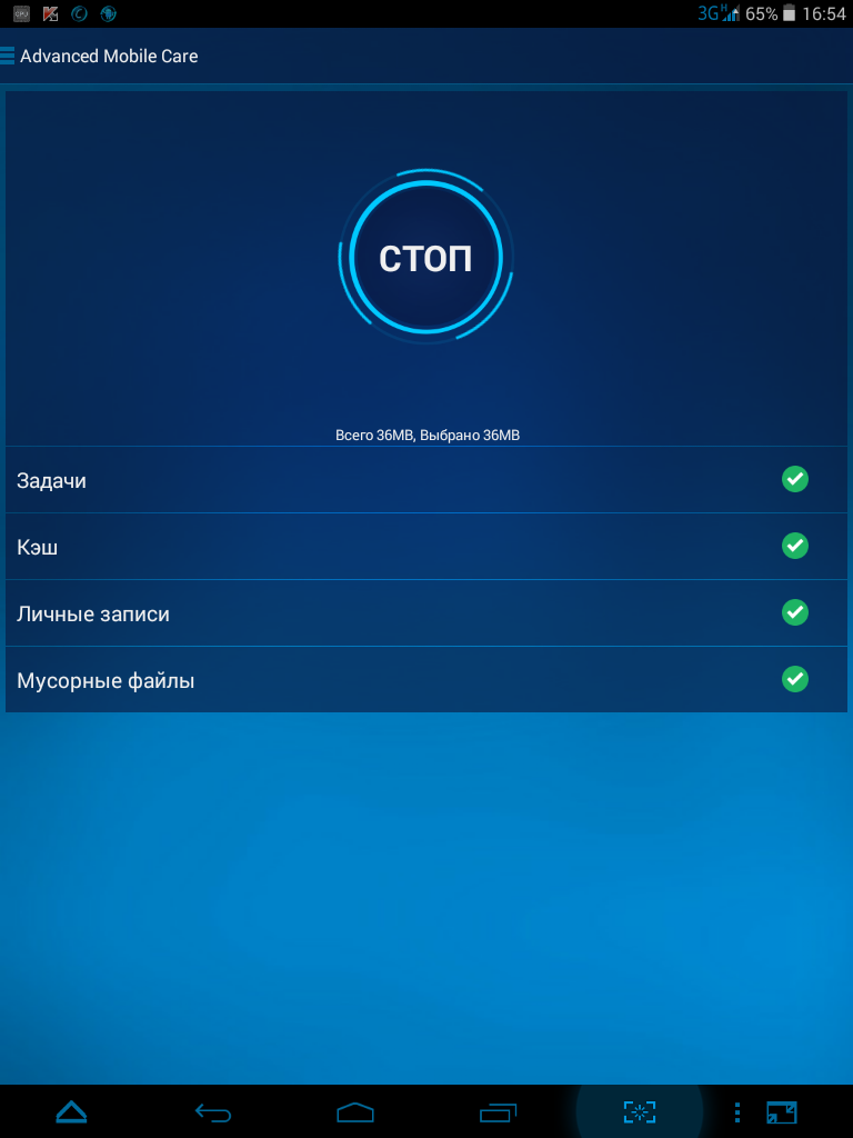 Однако не стоит судить оптимизатор слишком строго, как в настройках мы установили глубокое сканирование, которое видно предполагает удаление всего, в том числе того, что можно и не удалять. Как бы там ни было, но со стандартными функциями очистки AMC справился, не показав каких-либо выдающихся результатов. Теперь давайте пробежимся по всем функциям приложения.