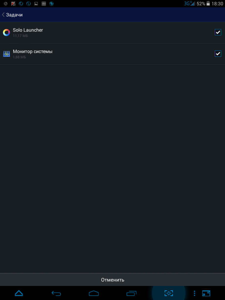 Убийца процессов нас очень расстроил, так как, кроме того, что AMC считает лишним, а мы нет, оптимизатор не показал. Опять решил за нас. Почему автор должен отключать задачи полезных ему «Монитора системы» и OfficeSuite, если оперативной памяти доступно 448 Мбайт из одного гигабайта, а четырехъядерный процессор загружен на 5-8%? Вот если бы нам предоставили список всех запущенных процессов, то мы бы сами без труда выбрали, что и когда остановить. В любом случае даже неопытный пользователь поймет, что если «левая» игрушка постоянно зачем-то работает в фоне и что-то там «мутит», то лучше этот процесс убить «намертво».
