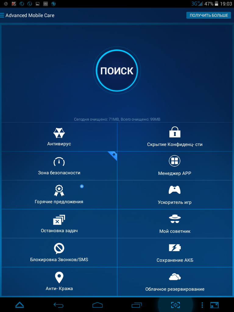 Advanced Mobile Care – приложение для тех, кто любит и ценит его PC-версию, поскольку по сути является частью этого комбайна для Windows, Mac и Android. Тех, кто не знаком с этим продуктом, а устанавливает его только ради интереса, эта программа может сильно разочаровать, так как на каждом шагу AMC пытается привязать к себе раз и навсегда.