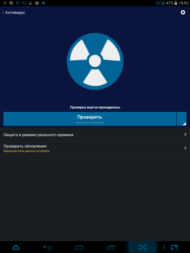 Просим прощения, но мы не успели заразить стендовый «планшетофон» хоть чем-либо. Поэтому объективно судить о том, как и какие угрозы уничтожает антивирус, сложно, тем более что посещать для этого «клубничные» сайты было бы глупо. Однако если верить отзывам пользователей, то AMC находит и уничтожает те угрозы, которые не могли «убить» даже специализированные антивирусы.