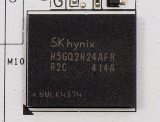 Всего на плате распаяны двенадцать микросхем памяти по 256 Мбайт каждая производства SK Hynix с шиной обмена данных 384 бита, что дает общий объем памяти в 3 Гбайта. Паспортная частота памяти – 1750 МГц (эффективная частота 7000 МГц).