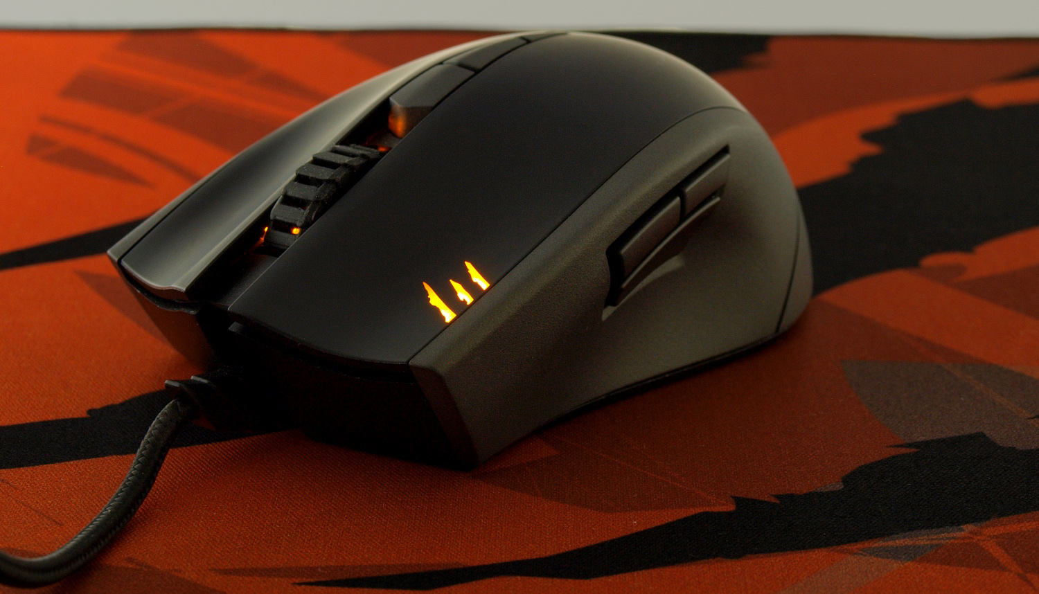 Кроме этого, кое-чем смогут порадовать и основные кнопки. Во-первых, левая клавиша снабжена тремя индикаторами уровня dpi, что позволяет быстро ориентироваться в установленных значениях. Во-вторых, колесико прокрутки получило приятную, но в то же время слабую оранжевую подсветку.