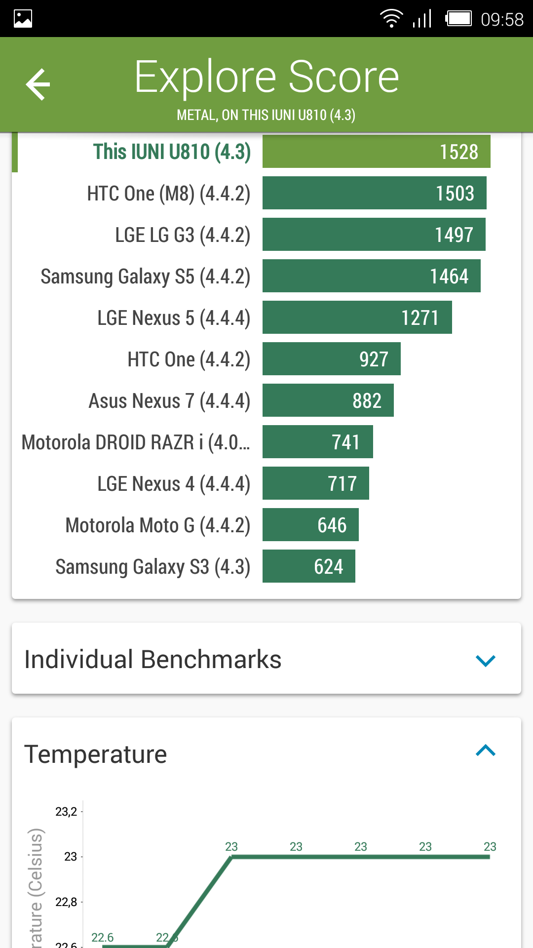 Как можно видеть, производительность находится на весьма высоком уровне. И хотя до лидерских позиций IUNI U2 не дотягивает, его запаса быстродействия хватит на любые самые современные задачи.