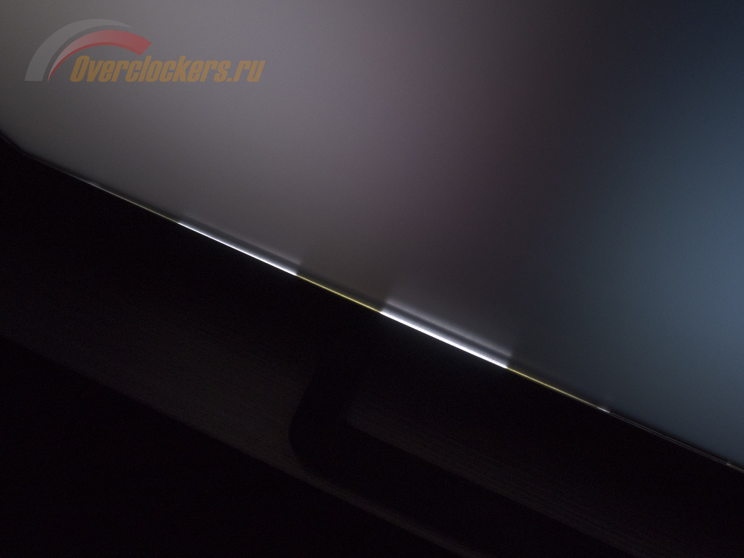 В ходе тестирования были обнаружены явные проблемы сборки в области расположения лент светодиодной подсветки в нижней части корпуса. Лента наглядно себя демонстрирует в левой области и немного в правой. По опыту работы с другими похожими мониторами знаю точно, что так быть не должно.