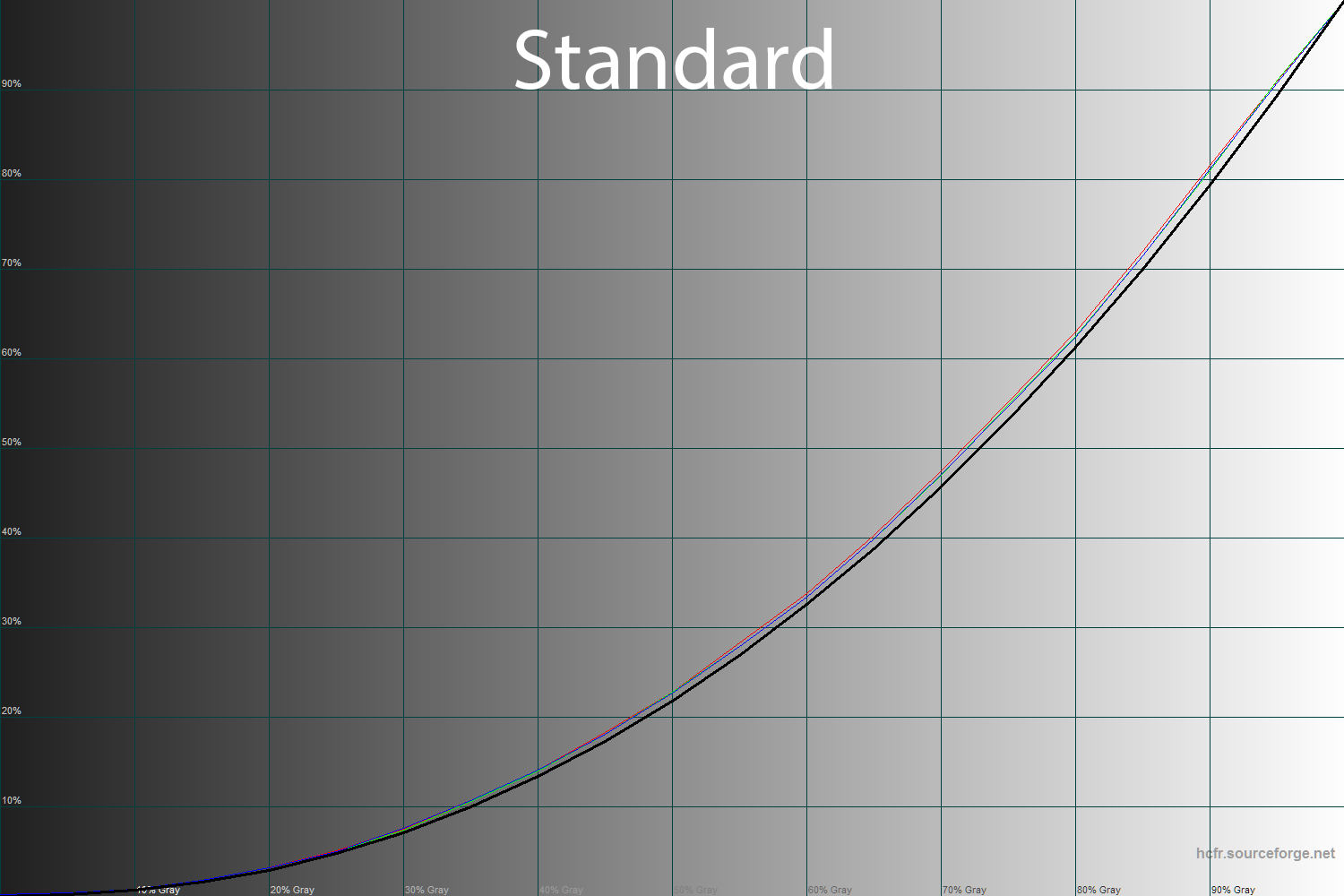 Все последующие режимы с точки зрения гамма-кривых настроены чуть лучше, чем Standard Mode. Но по отклонениям цветопередачи из предыдущего раздела тестирования становится ясно – точность в них несколько ниже.