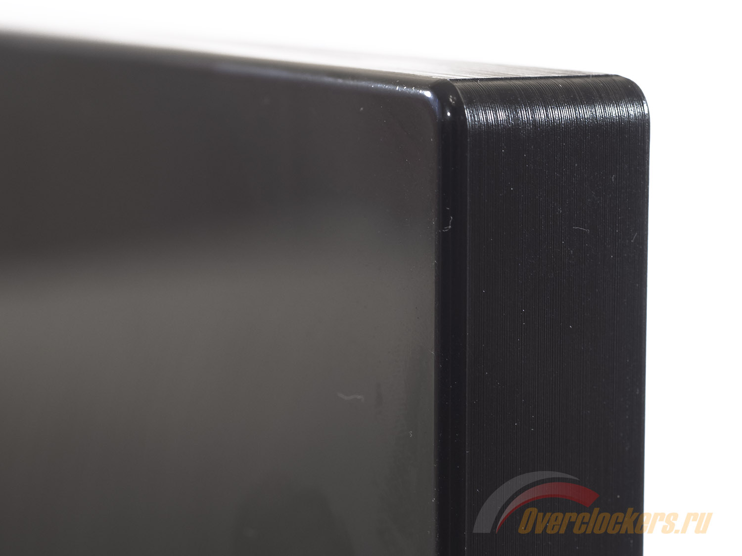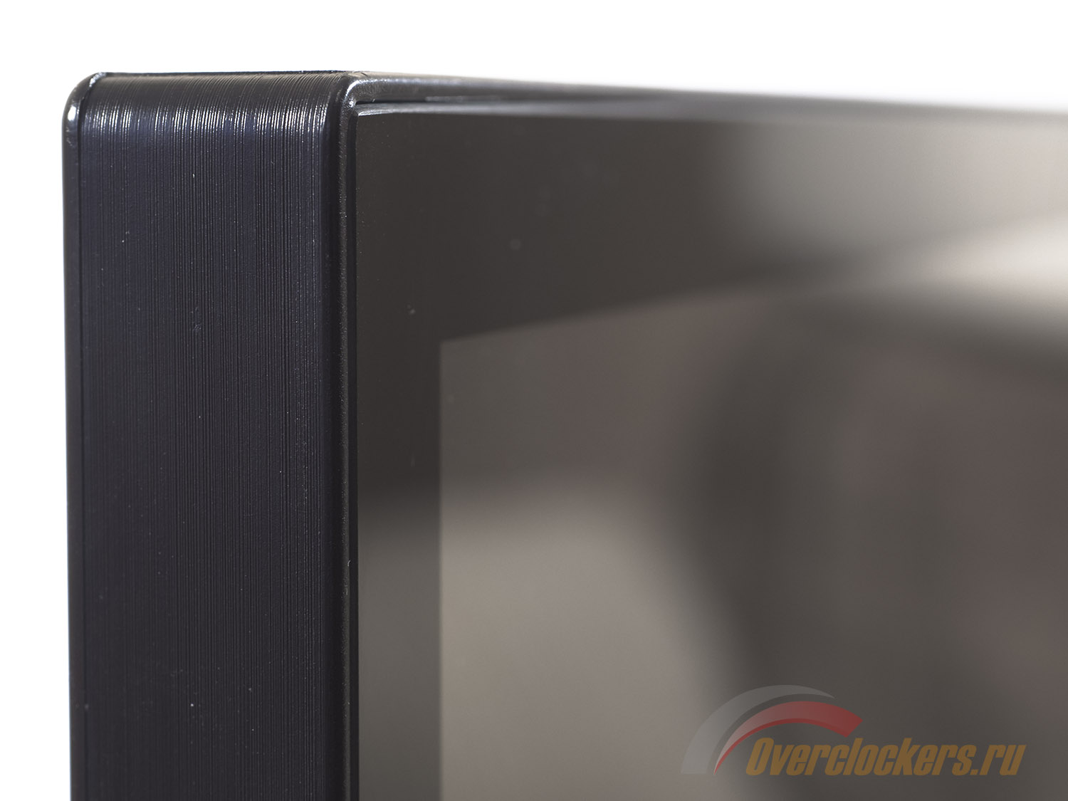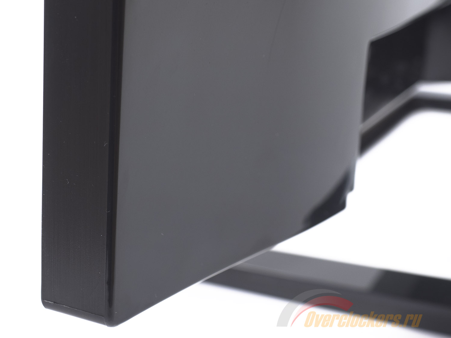 Корпус дисплея получился средним по толщине, за минимализмом никто не гнался. 95% всех элементов выполнены из черного глянцевого пластика. Оставшиеся пять процентов – редкие вставки из матового пластика, который нашел себе место и в качестве окантовки корпуса, причем со шлифовкой под алюминий.