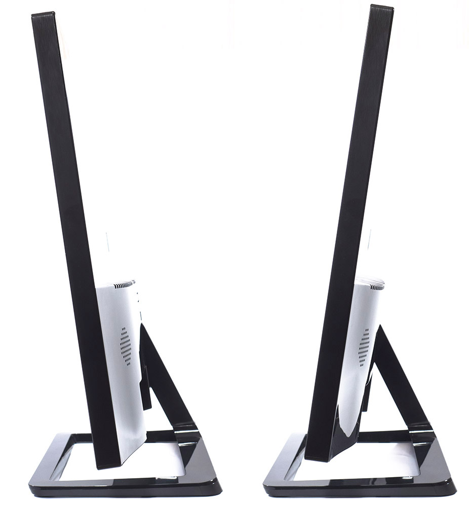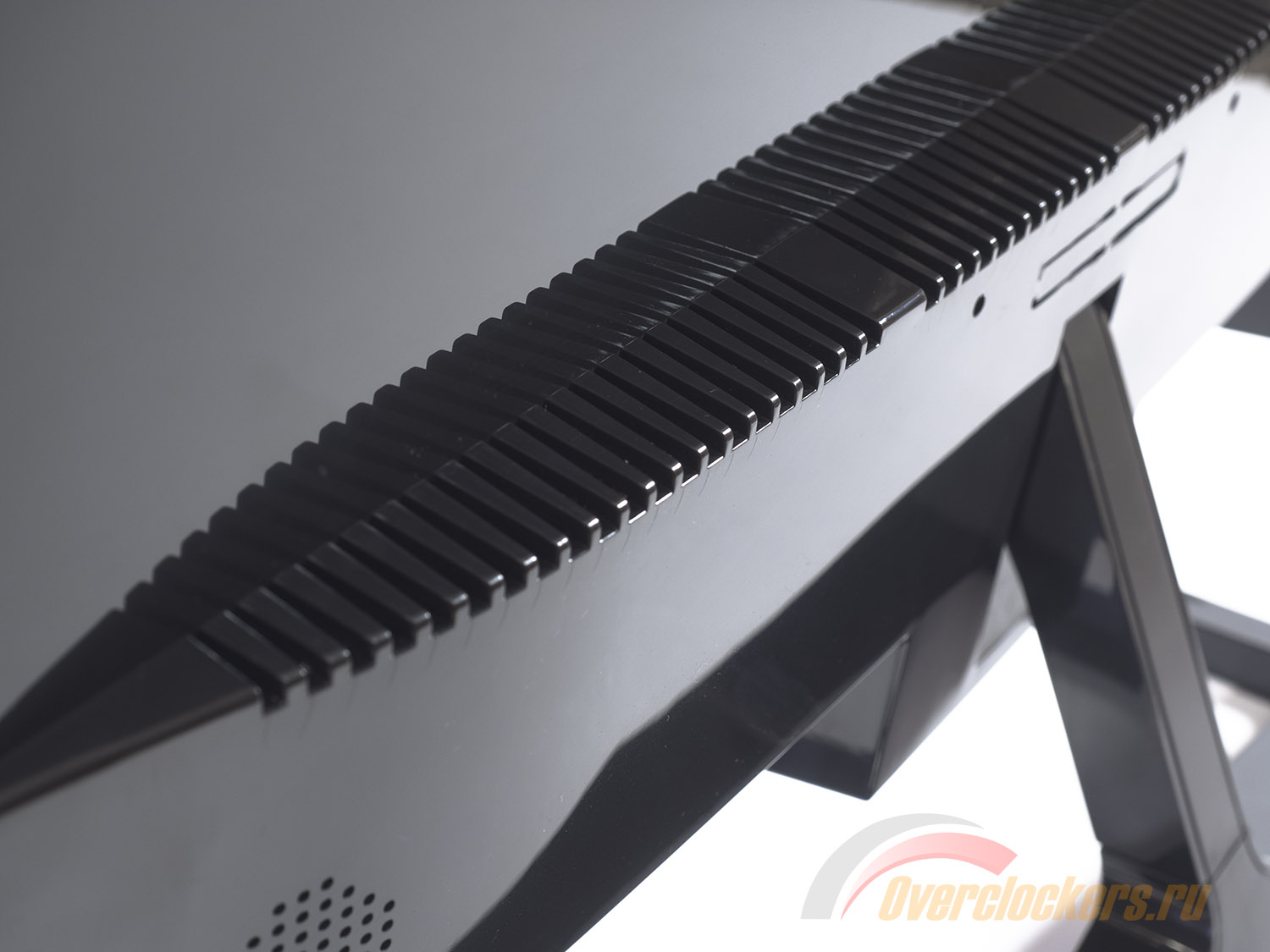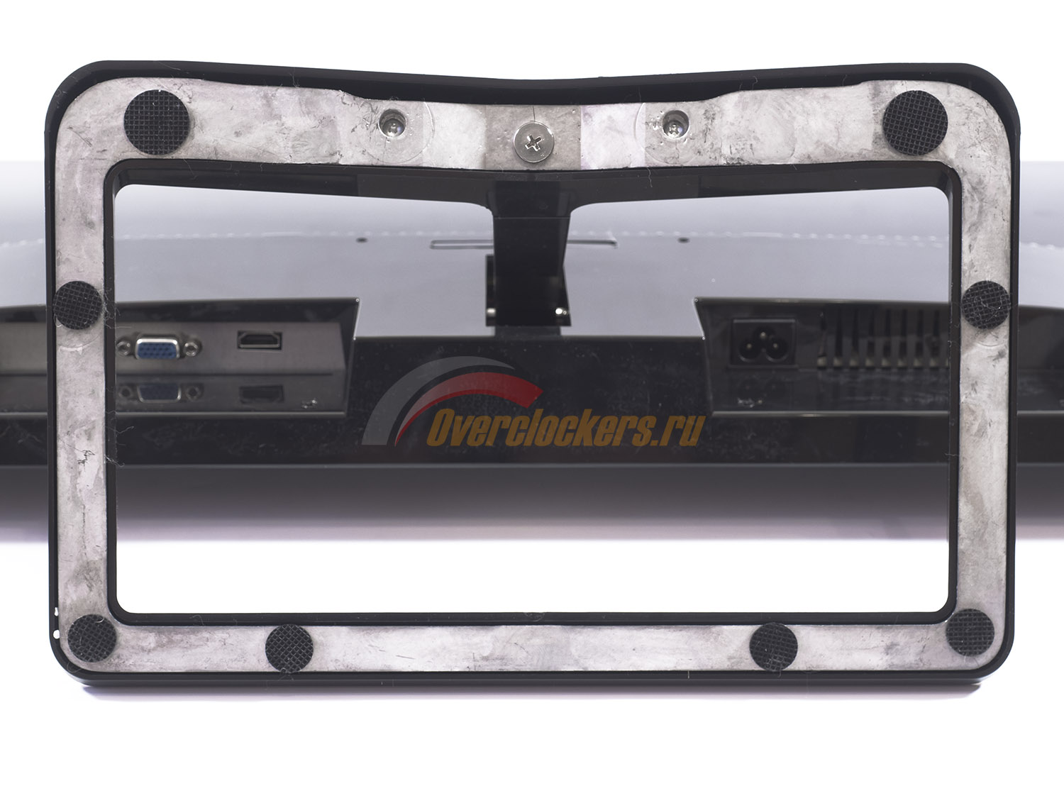 Корпус дисплея получился средним по толщине, за минимализмом никто не гнался. 95% всех элементов выполнены из черного глянцевого пластика. Оставшиеся пять процентов – редкие вставки из матового пластика, который нашел себе место и в качестве окантовки корпуса, причем со шлифовкой под алюминий.