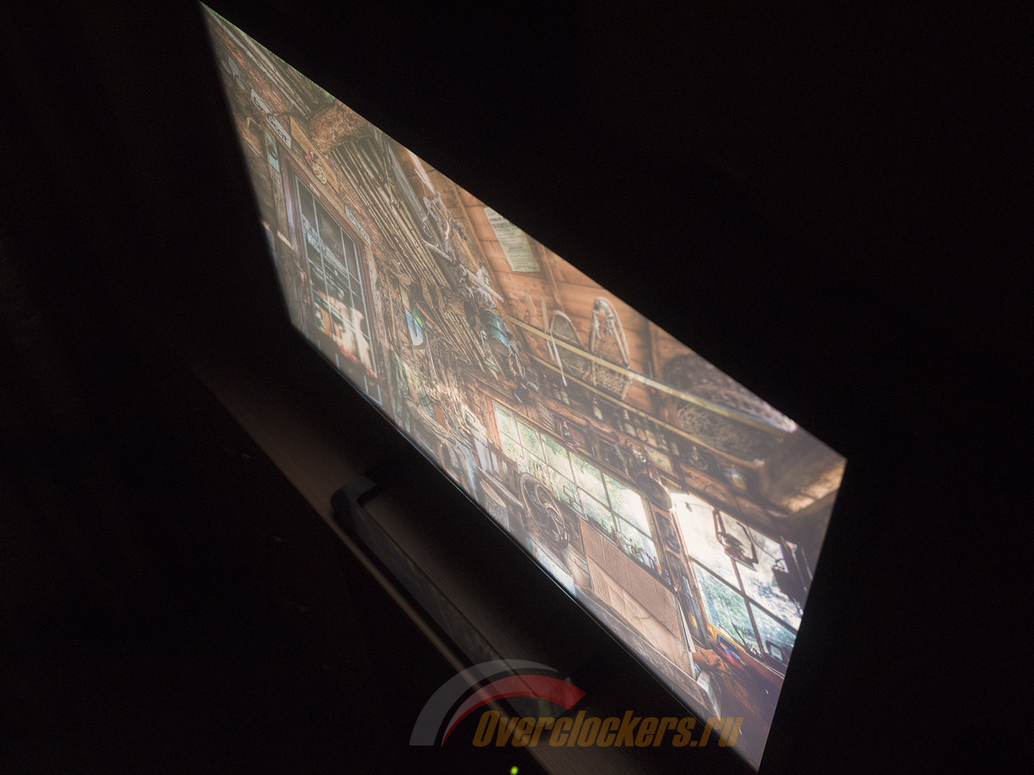 Взглянув на угол экрана, находясь где-то в стороне от монитора в темное время суток, можно обнаружить сине-фиолетовый паразитный оттенок, который возникал на некоторых 23-дюймовых e-IPS решениях и крайне редко на некоторых 27-дюймовых AH-IPS стандарта Full HD. Вот такая вот ADS матрица…