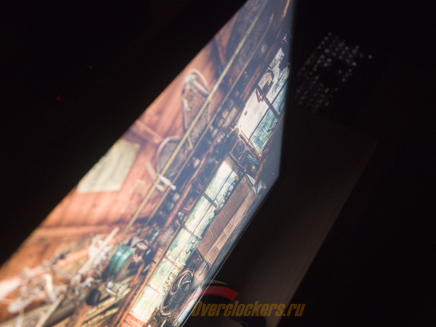 При изменении угла обзора на темных участках и просто черном поле вы не увидите ничего хорошего. Glow эффект проявляет себя, как и следует IPS-подобным решениям.