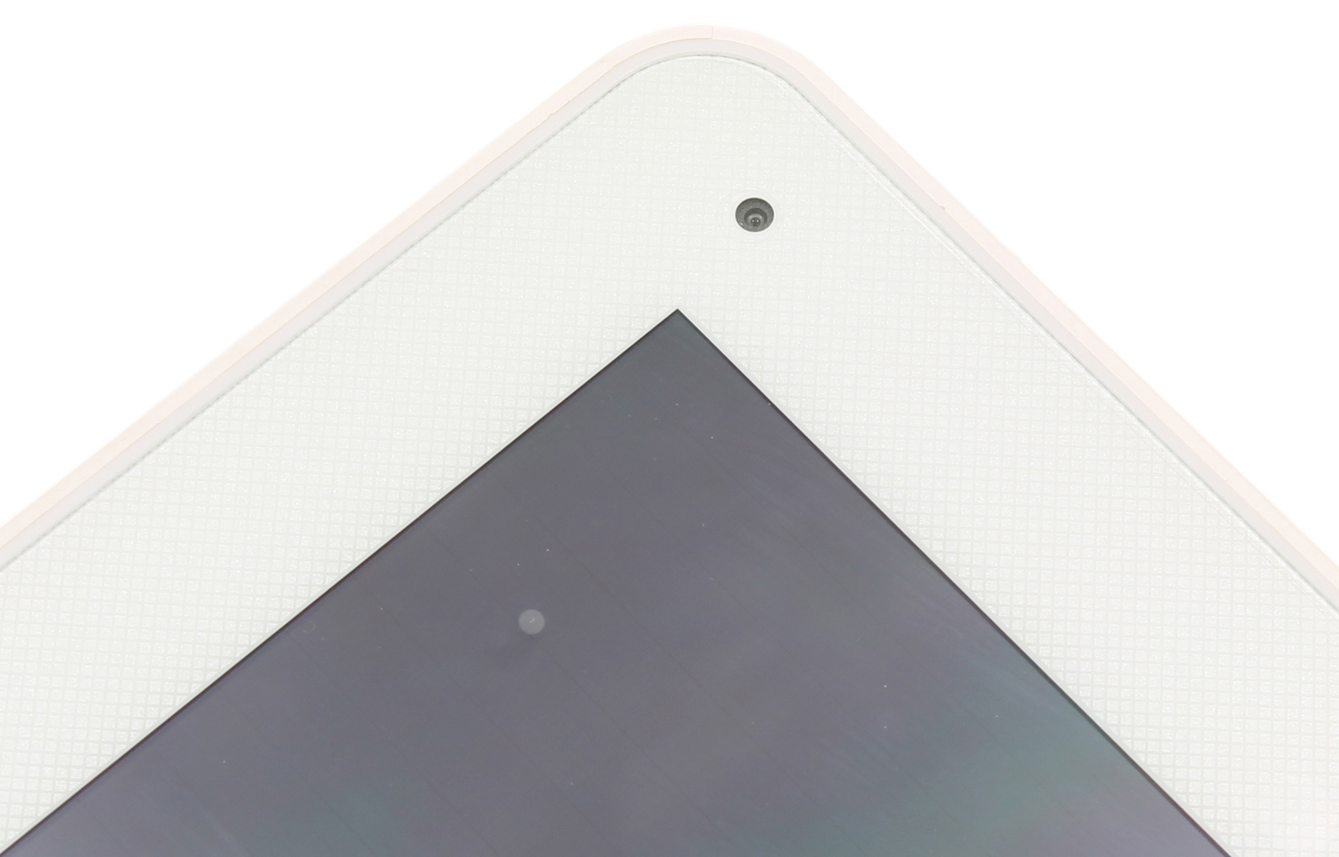 Пластик вокруг дисплея получил еле заметную текстуру в виде сетки. Никаких сенсорных кнопок (они наэкранные), индикаторов событий, датчиков освещенности и прочих полезных дополнений здесь нет.