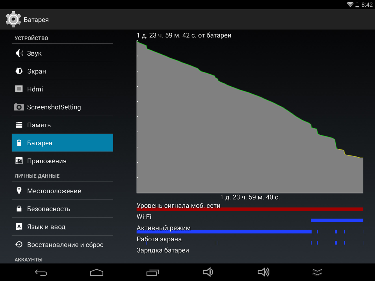 Если планшет использовать в щадящем режиме (например, преимущественно для прослушивания музыки с выключенным экраном, а не для браузинга), можно рассчитывать на один день автономной работы.