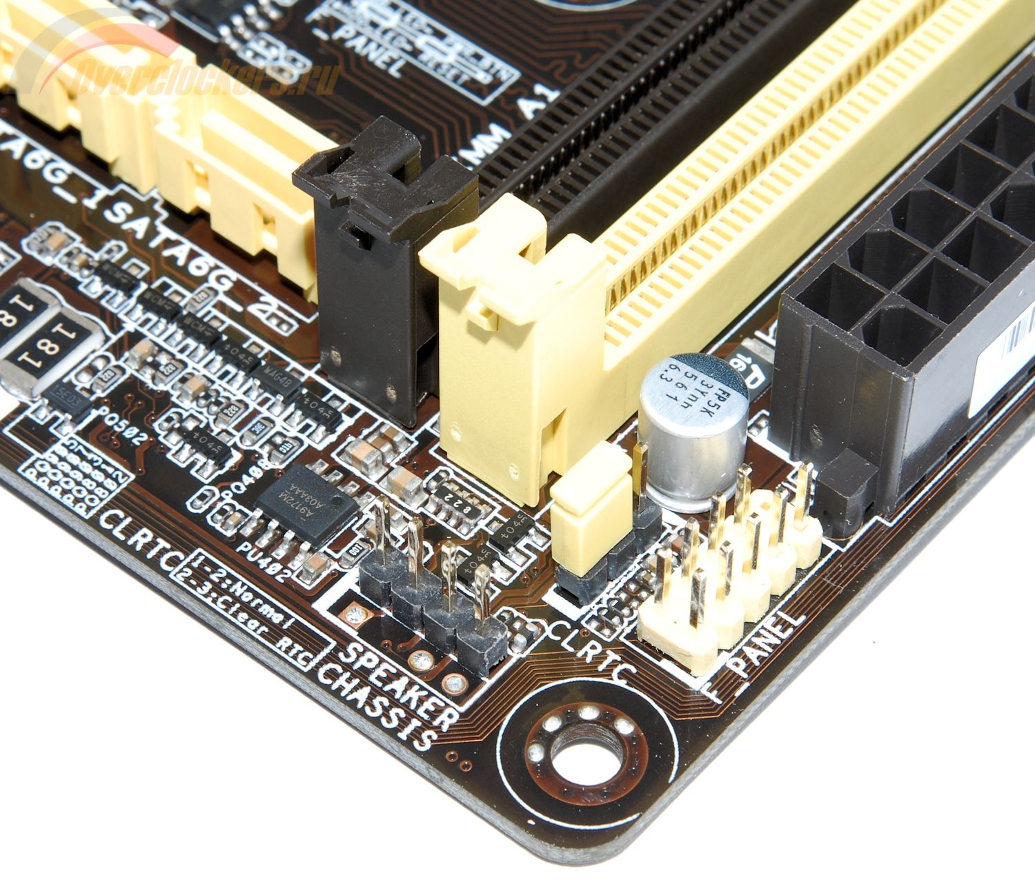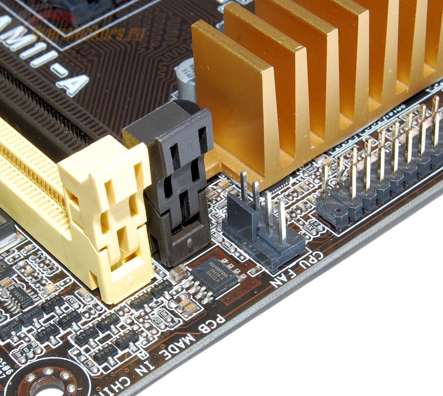 Обратите внимание, что разъем дополнительного питания, который обслуживает вышеуказанные преобразователи, вынесен на максимально возможное расстояние от процессорного сокета, при этом защелка обращена внутрь материнской платы