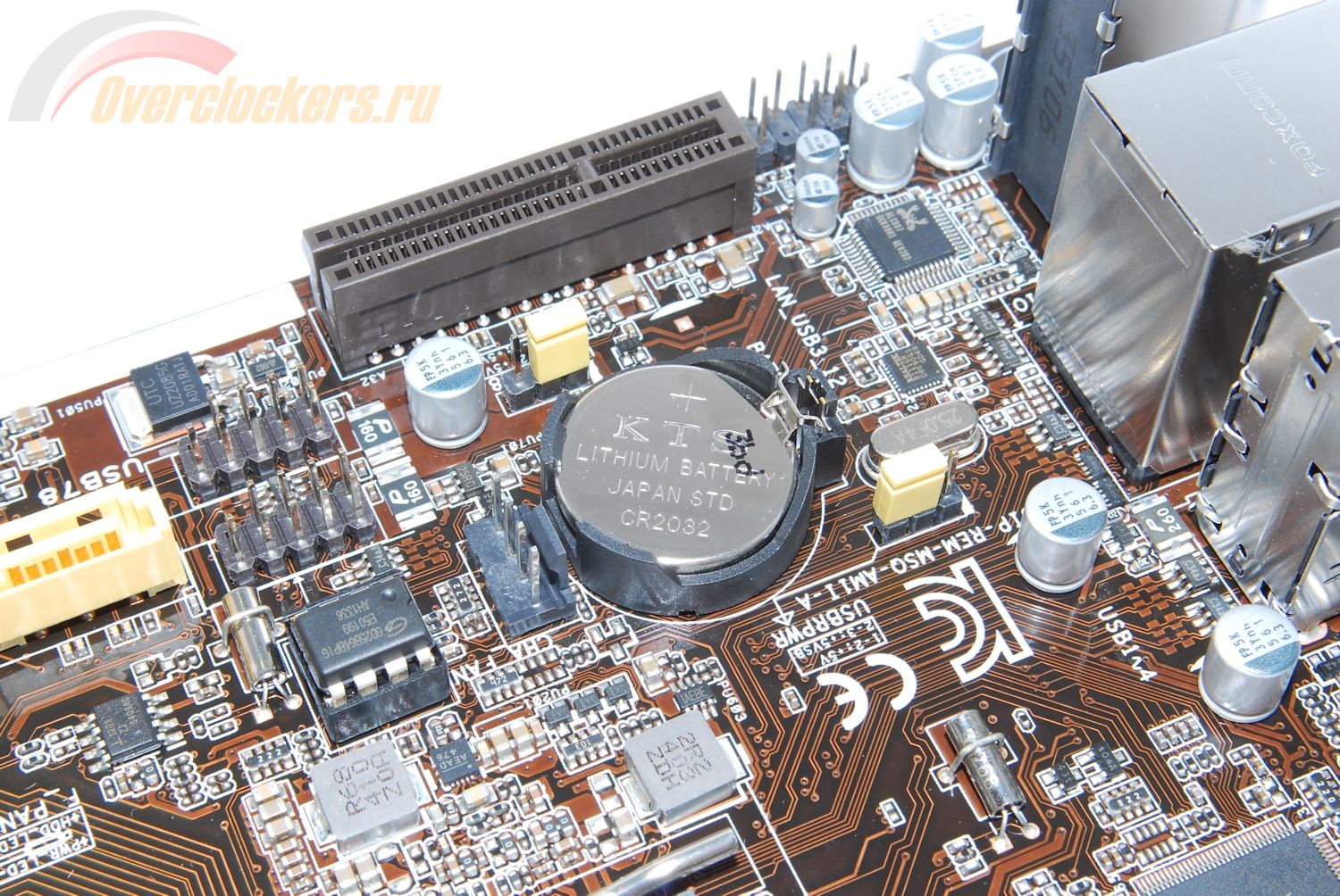 Батарейка и перемычка расположены под слотом PCI-Express.