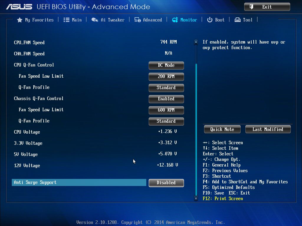 Приятно порадовала реализованная ASUS защита от переразгона: если материнская плата не может запуститься в результате установки неудачных настроек, то достаточно зажать кнопку Power на корпусе системного блока (или замкнуть соответствующие штырьки на плате) на несколько секунд, чтобы произошло отключение, а затем повторно нажать кнопку Power. Система запустится с настройками по умолчанию и остановится на экране прохождения POST с сообщение о неудачном разгоне. Все настройки в BIOS при этом сохраняются.